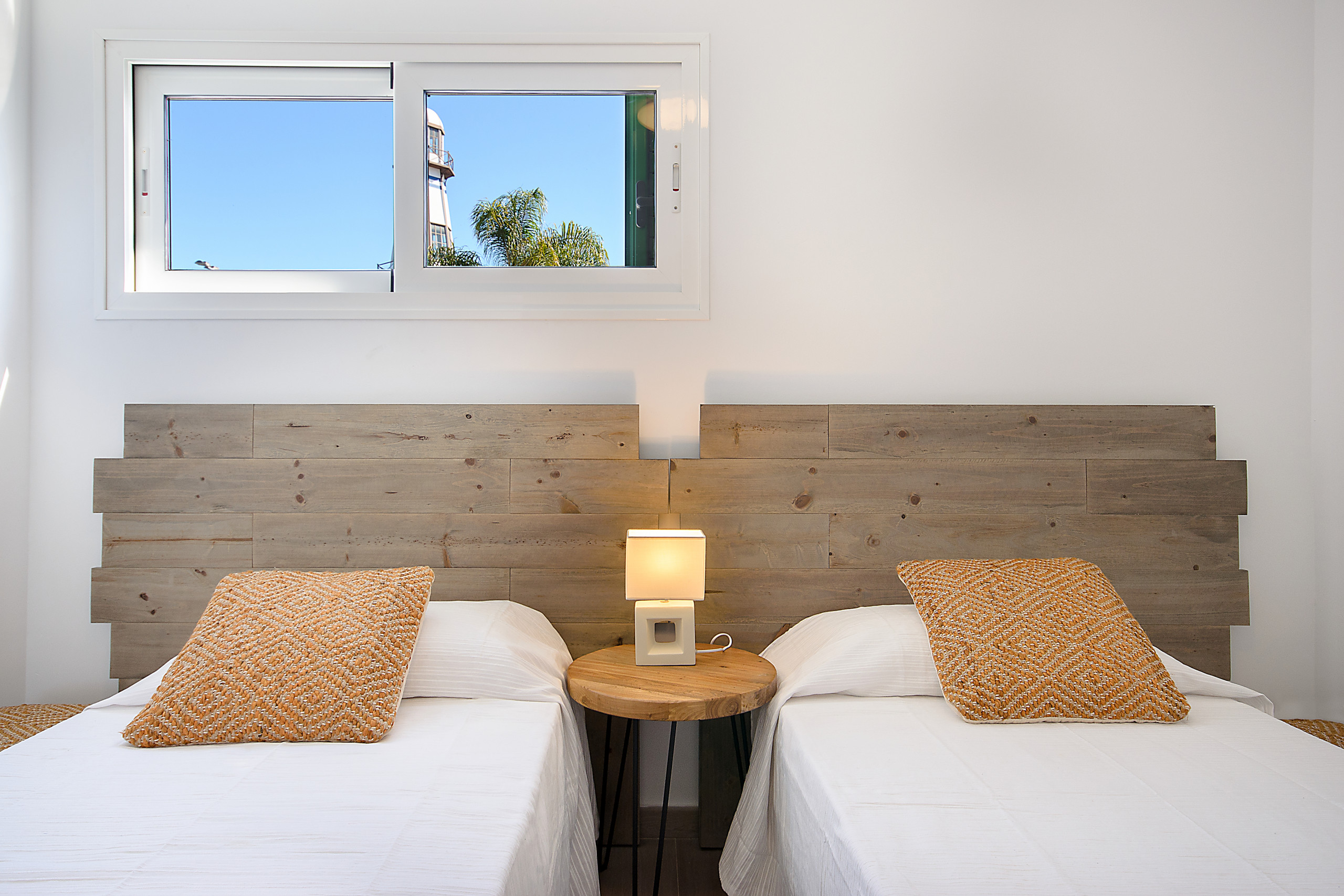 Esta moderna y coqueta vivienda de primera planta consta de 46m² y está decorada con un diseño exclusivo. Cuenta con salón comedor, cocina, un dormitorio doble con camas individuales y un baño con ducha.