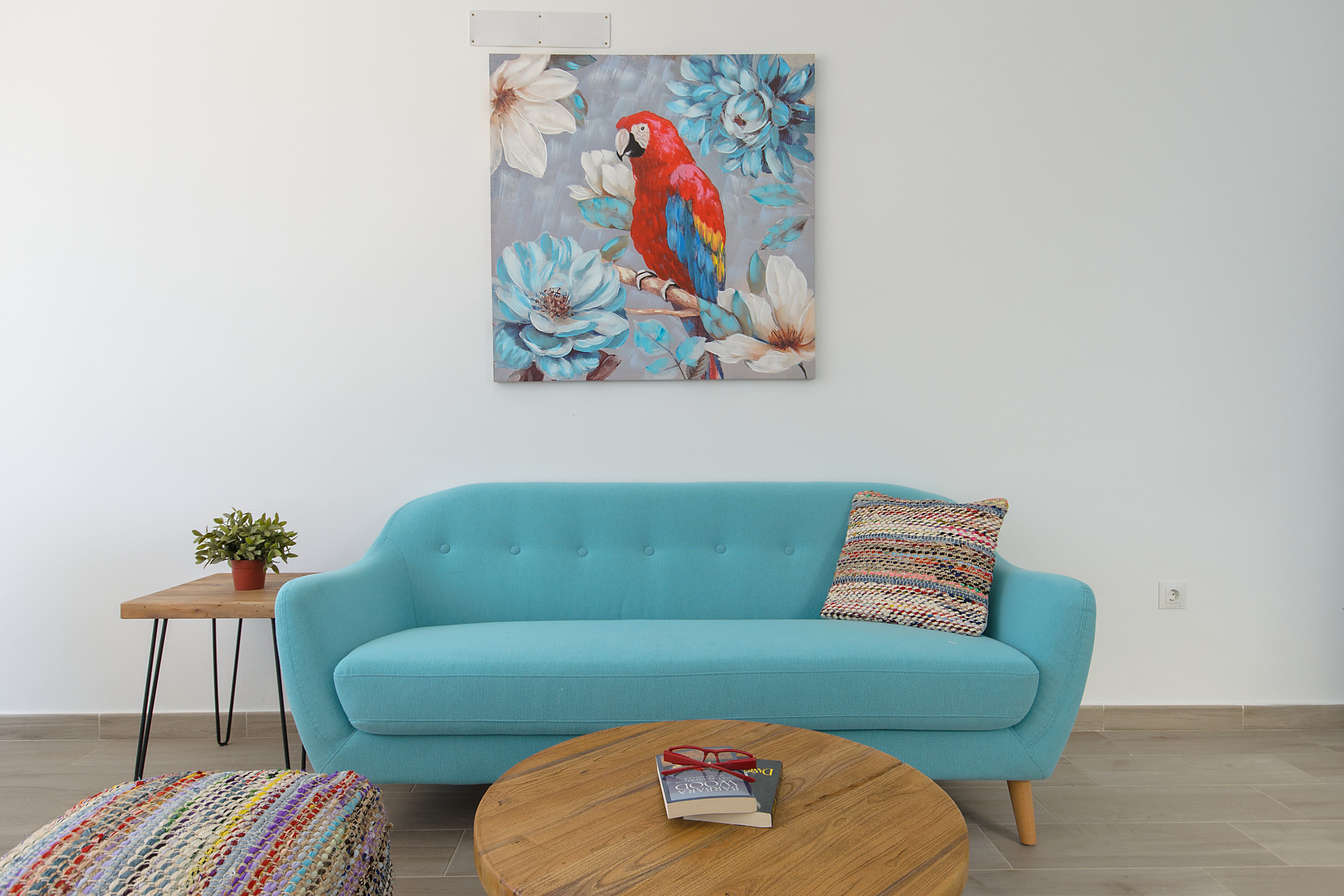 La cocina está totalmente equipada con vitrocerámica, horno, microondas, cafetera, tetera y exprimidor eléctrico, nevera y un completo menaje. Blue Volcano ofrece además un baño con ducha y un precioso dormitorio doble que dispone de camas individuales. Se puede aparcar gratis en la calle.