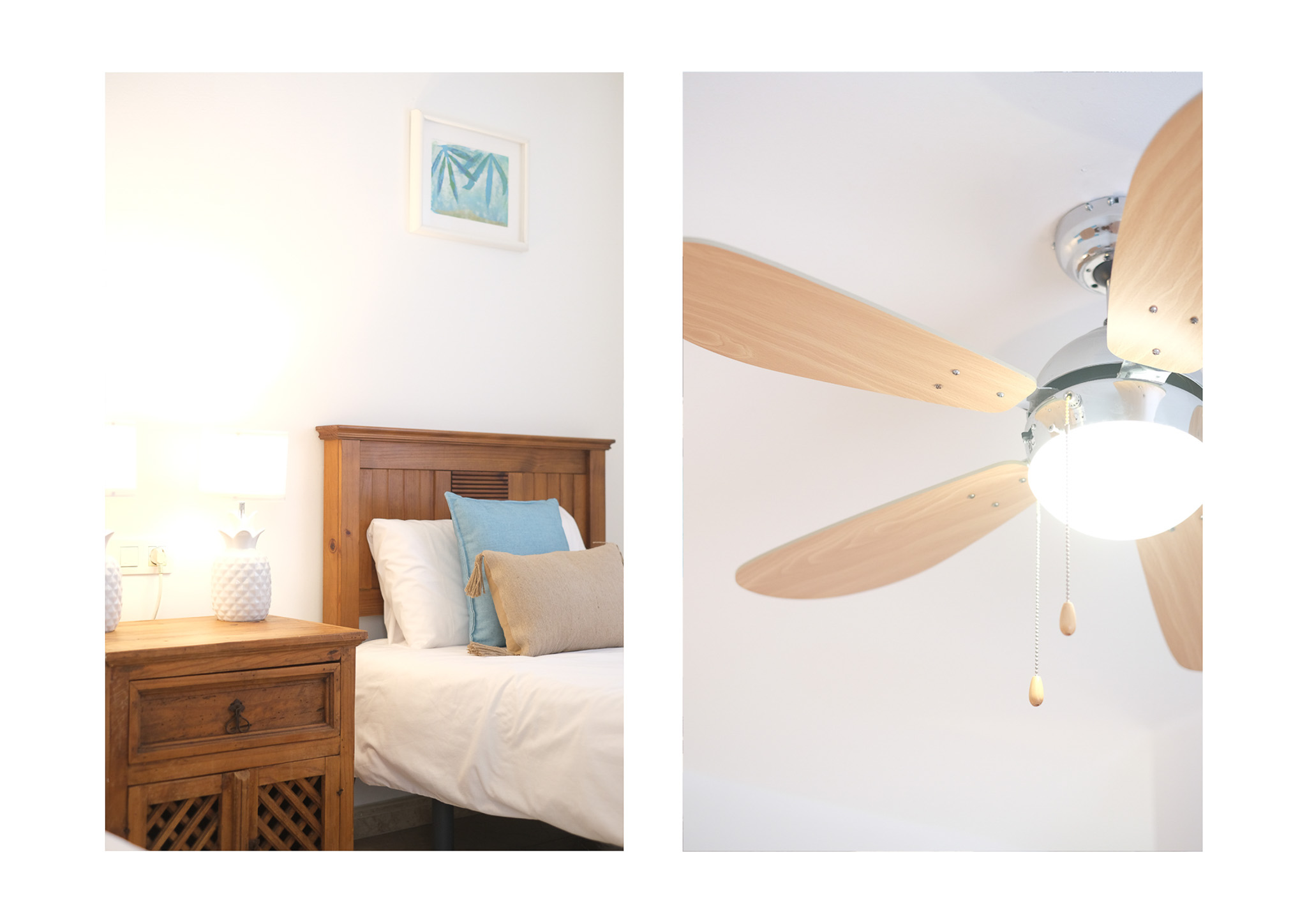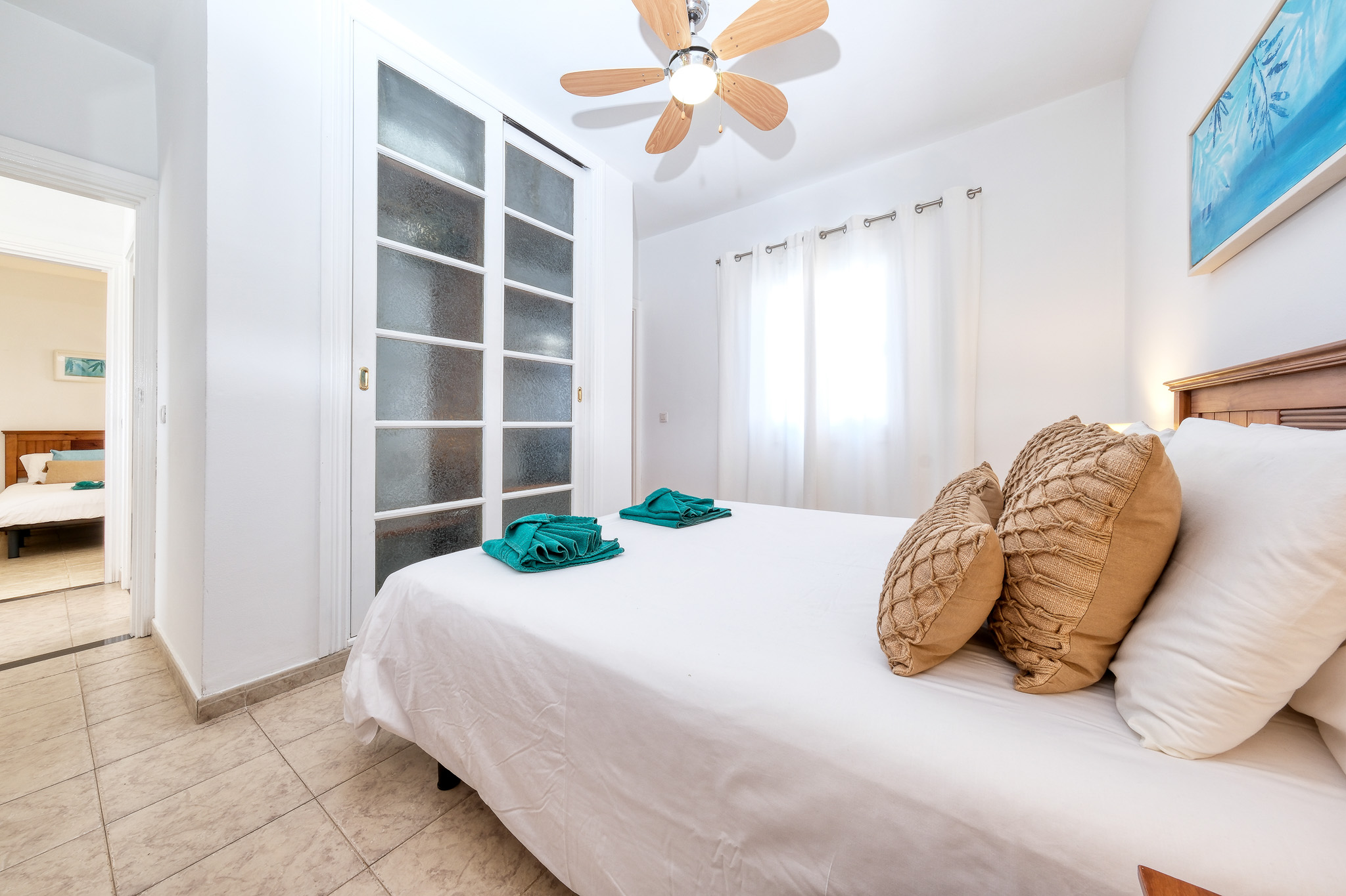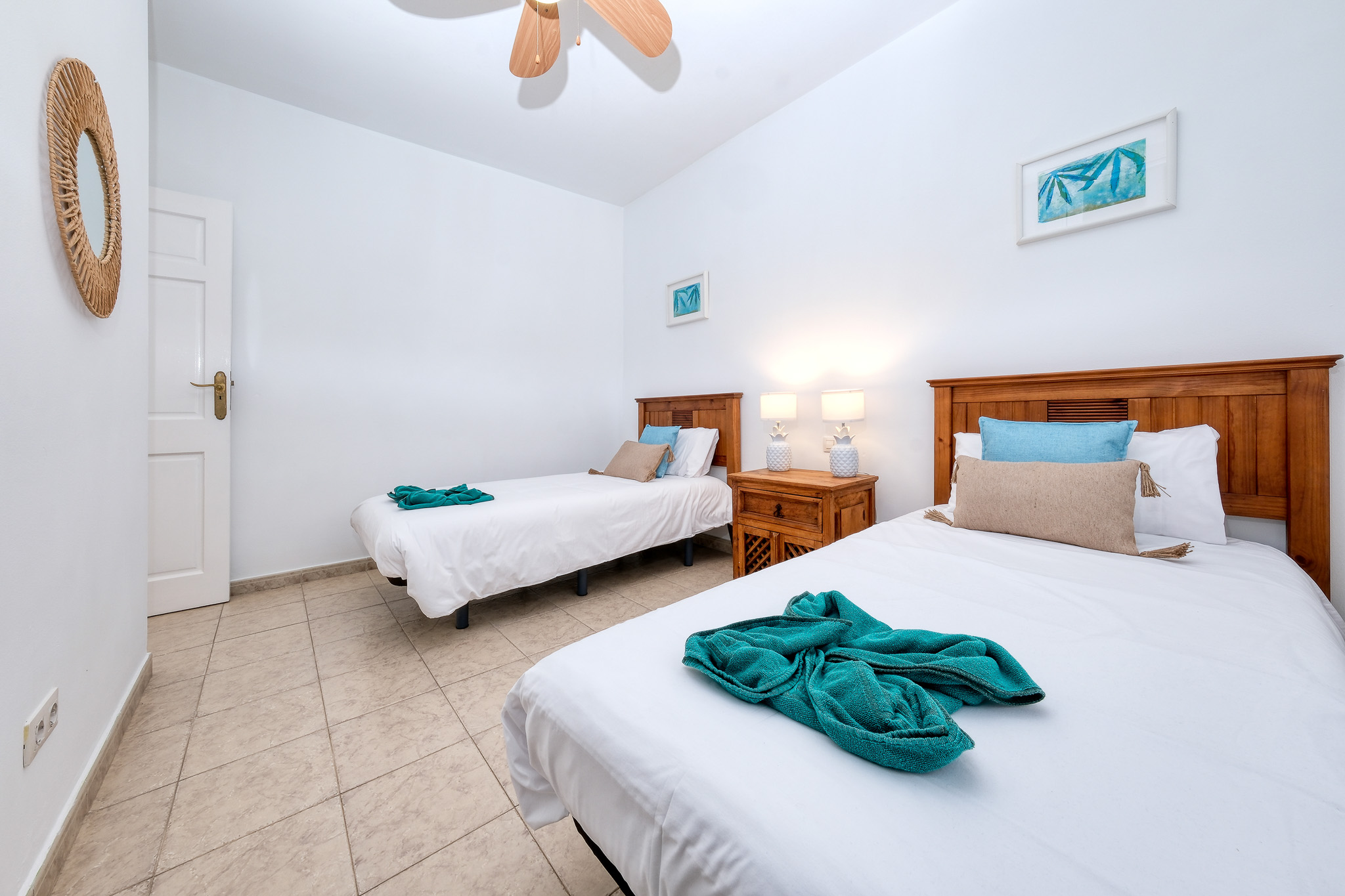 Esta vivienda cuenta con dos dormitorios para garantizar el máximo confort durante tu estancia. La primera habitación ofrece dos camas separadas, perfectas para familias o amigos que viajan juntos, y cuenta con un ventilador de techo para mantener un clima agradable en todo momento. Un baño completo con ducha está convenientemente ubicado cerca.