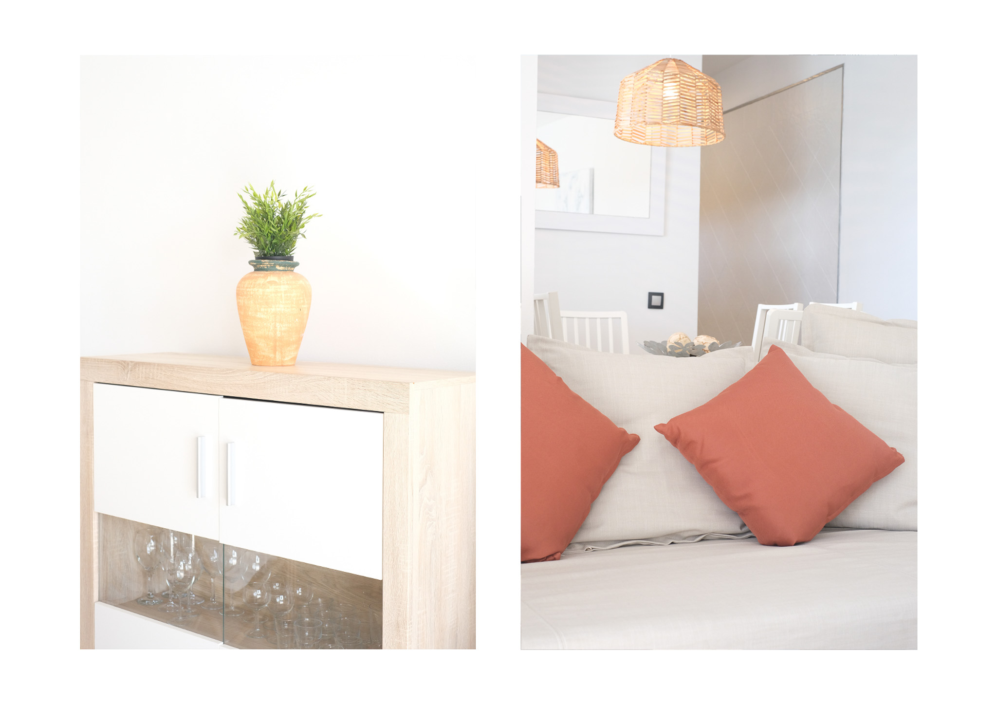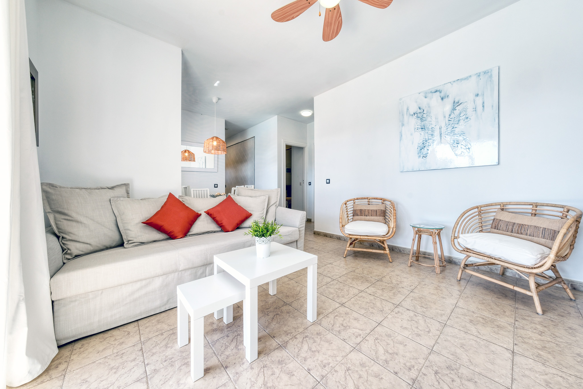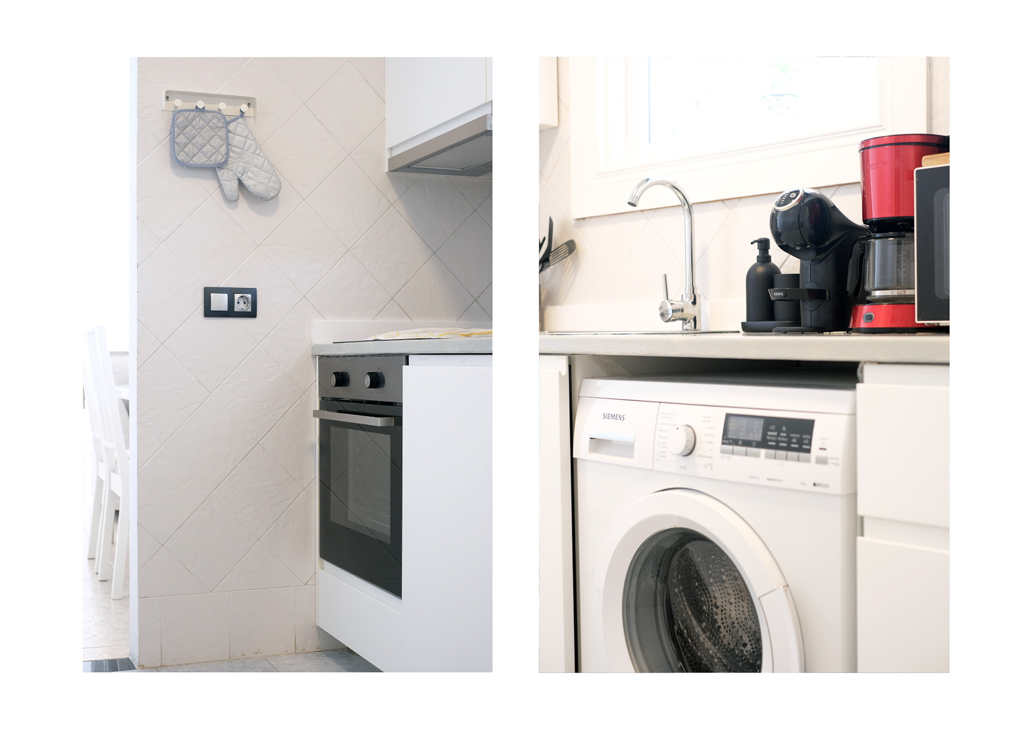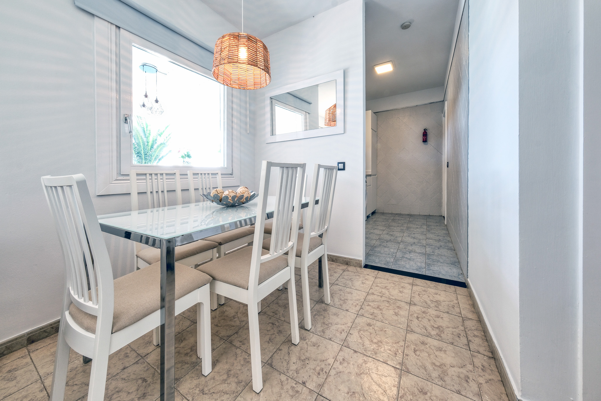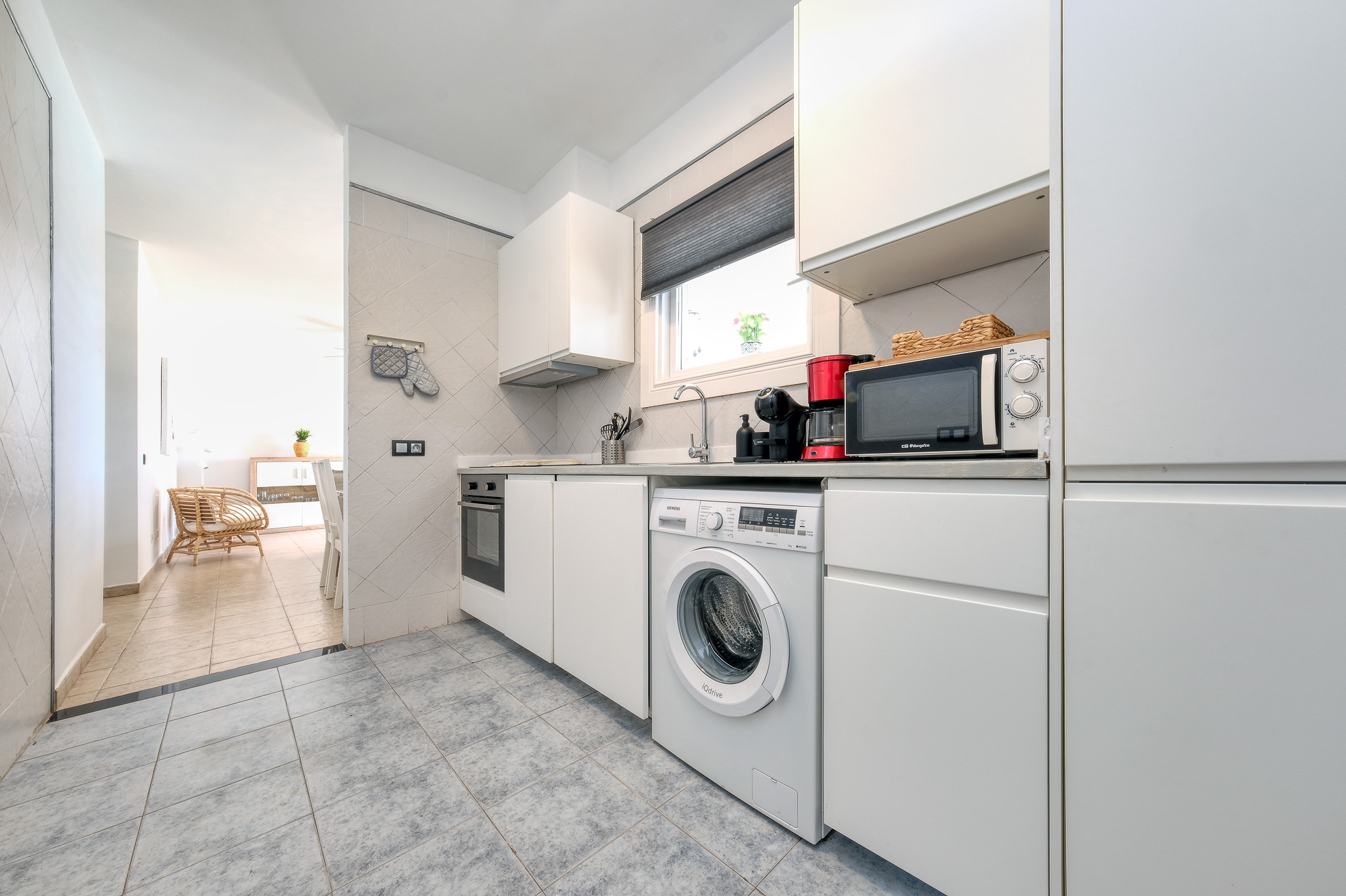 Al ingresar, serás recibido por un luminoso y acogedor salón, equipado con una Smart TV para que puedas disfrutar de tus programas favoritos después de un día de exploración. El cómodo sofá invita a relajarse, mientras que la zona de comedor cercana es ideal para compartir deliciosas comidas caseras preparadas en la cocina totalmente equipada, que incluye microondas, horno, placa 4 fuegos, amplia nevera, cafetera americana y de cápsulas.