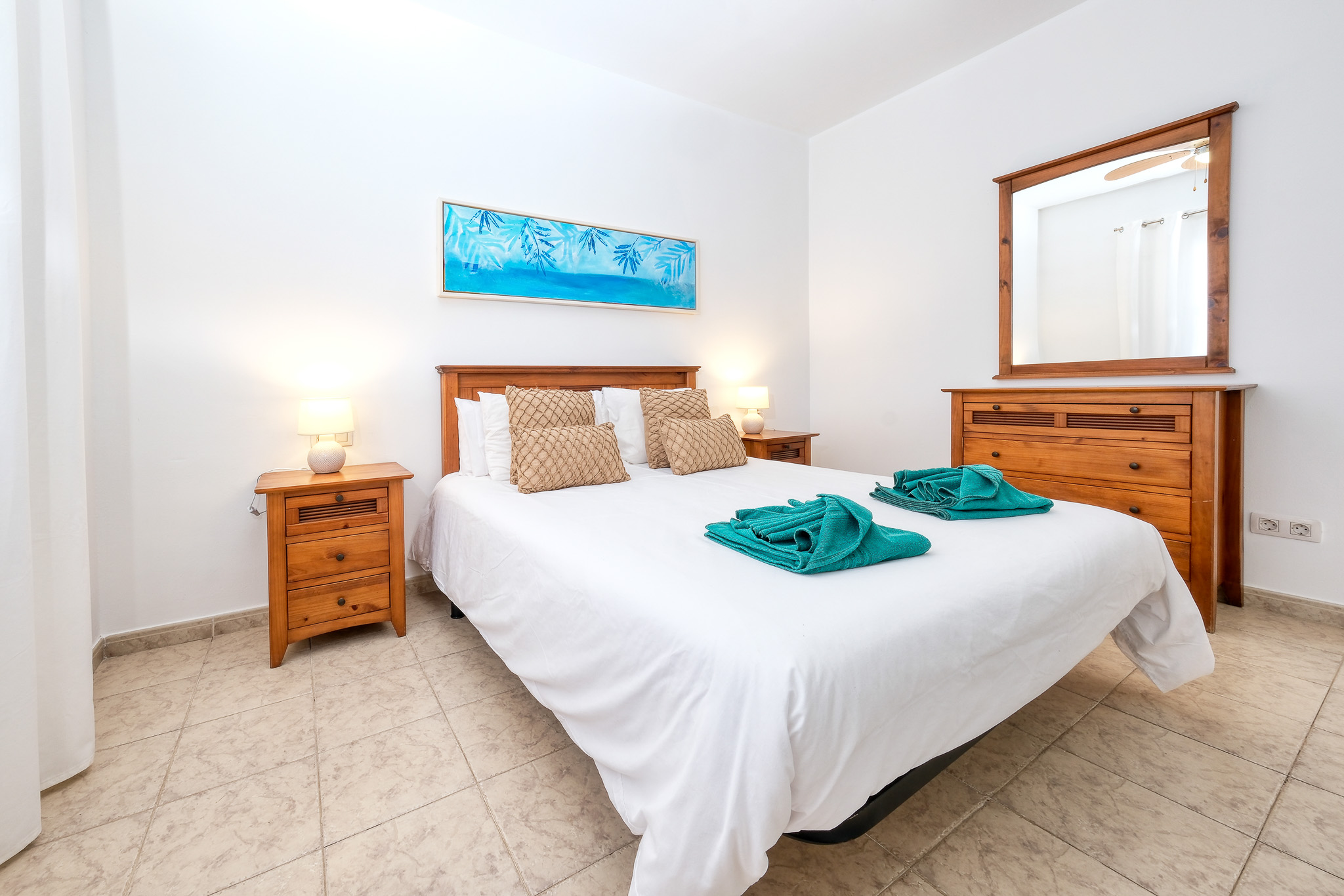 El dormitorio principal es un santuario de tranquilidad, con una cama de matrimonio lujosamente vestida y un amplio armario para guardar todas tus pertenencias. Además, encontrarás otro baño completo justo al lado, equipado con una amplia ducha, secador de pelo y plancha para la ropa, ¡todo lo que necesitas para sentirte como en casa!