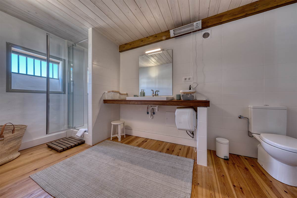 En la planta baja se distribuyen tres habitaciones amplias y cómodas. Dos de ellas cuentan con cama de matrimonio, siendo una especialmente acogedora al disponer de baño en suite para mayor privacidad. La tercera habitación ofrece dos camas individuales, una opción perfecta para niños, amigos o familiares.