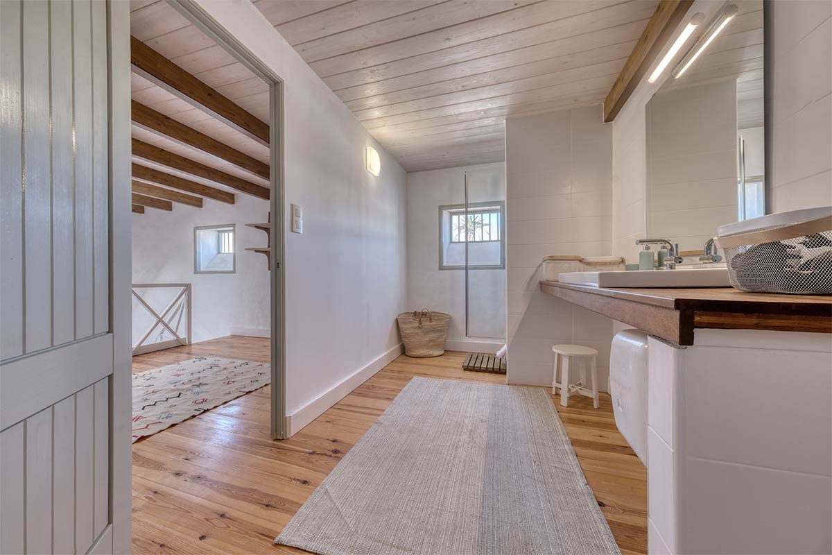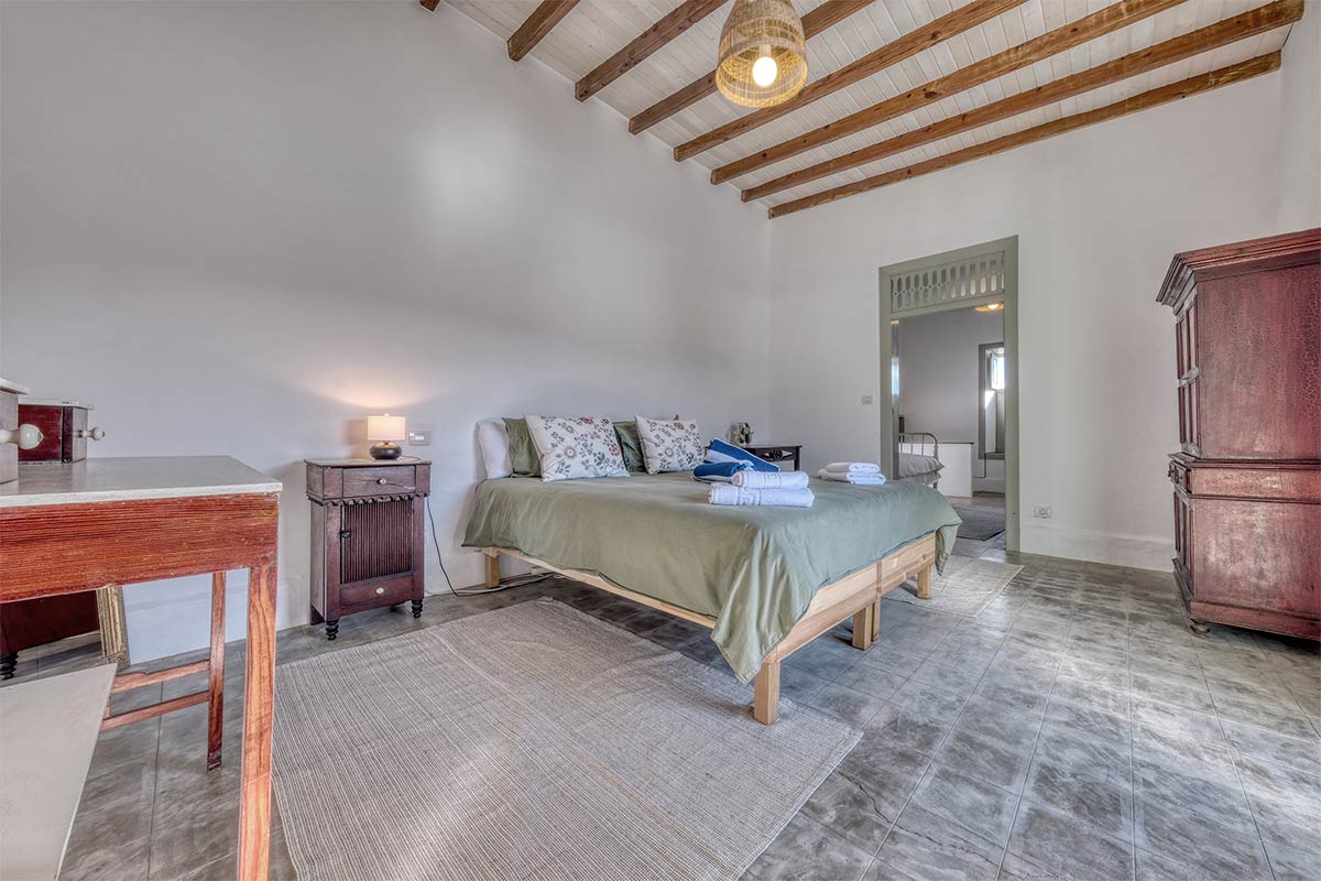 Subiendo a la segunda planta, la casa sorprende con un amplio hall recibidor que aporta amplitud y luz, junto a un baño con ducha. En esta misma planta se ubica una cuarta habitación, equipada con cama de matrimonio, armario y un bonito balcón que permite la entrada de luz natural y que conecta desde el exterior con el patio canario, ofreciendo además acceso directo a la planta baja.