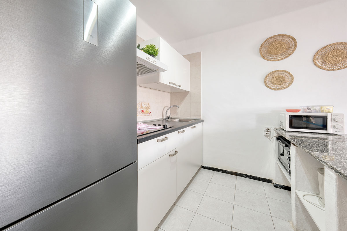 La cocina está completamente equipada, incluyendo placa de 4 fuegos, microondas, cafetera de cápsulas, hervidor de agua y todo el menaje necesario para preparar deliciosas comidas caseras. Ropa de cama, toallas de baño y playa (un juego por persona), además de lavadora y secador de pelo para tu comodidad.