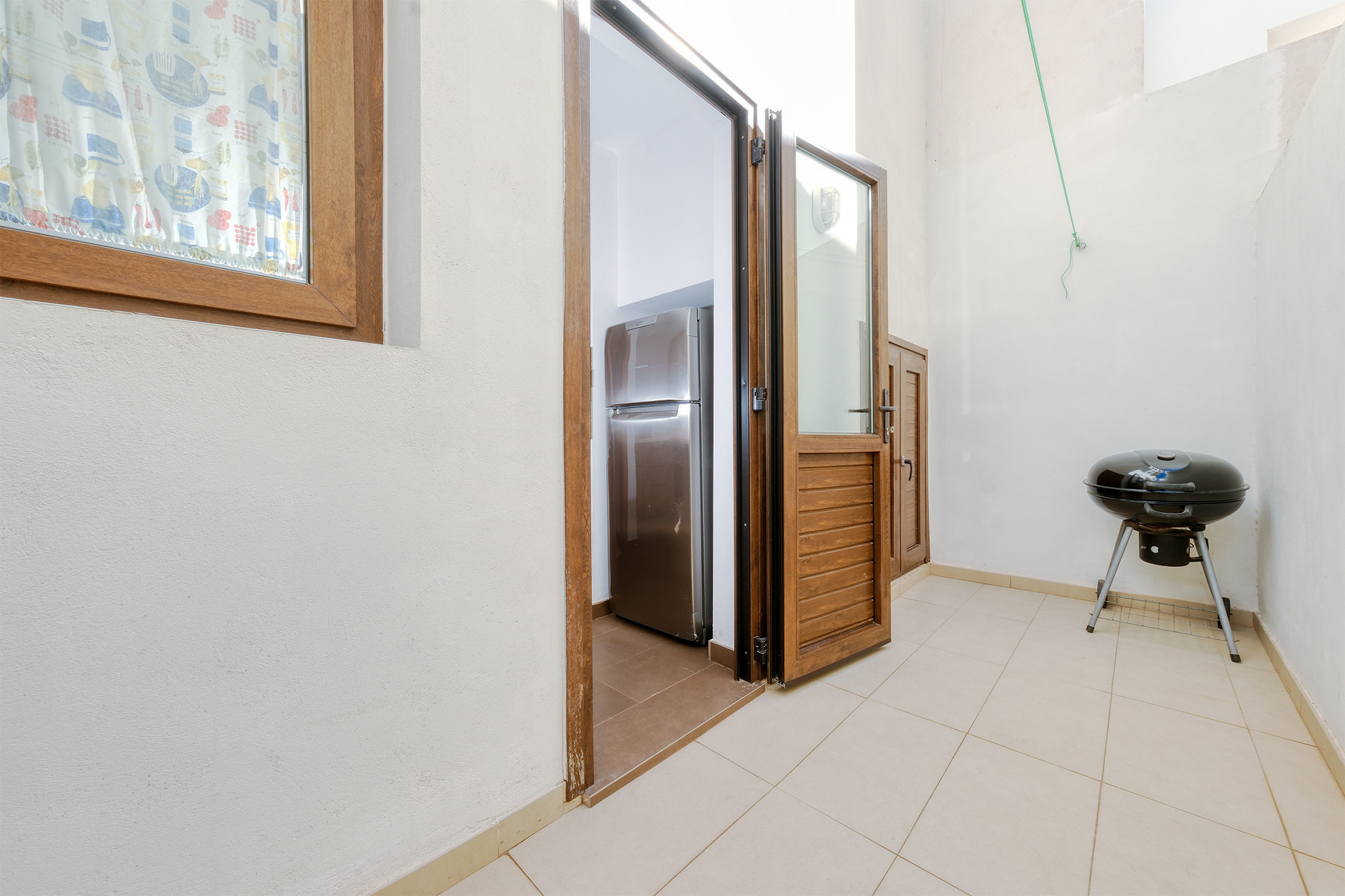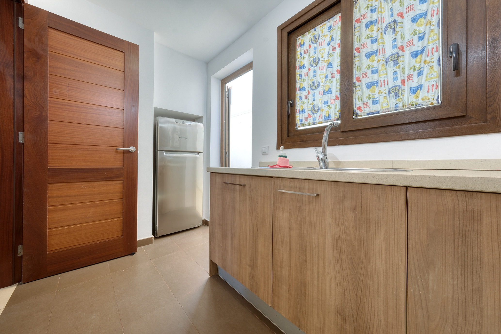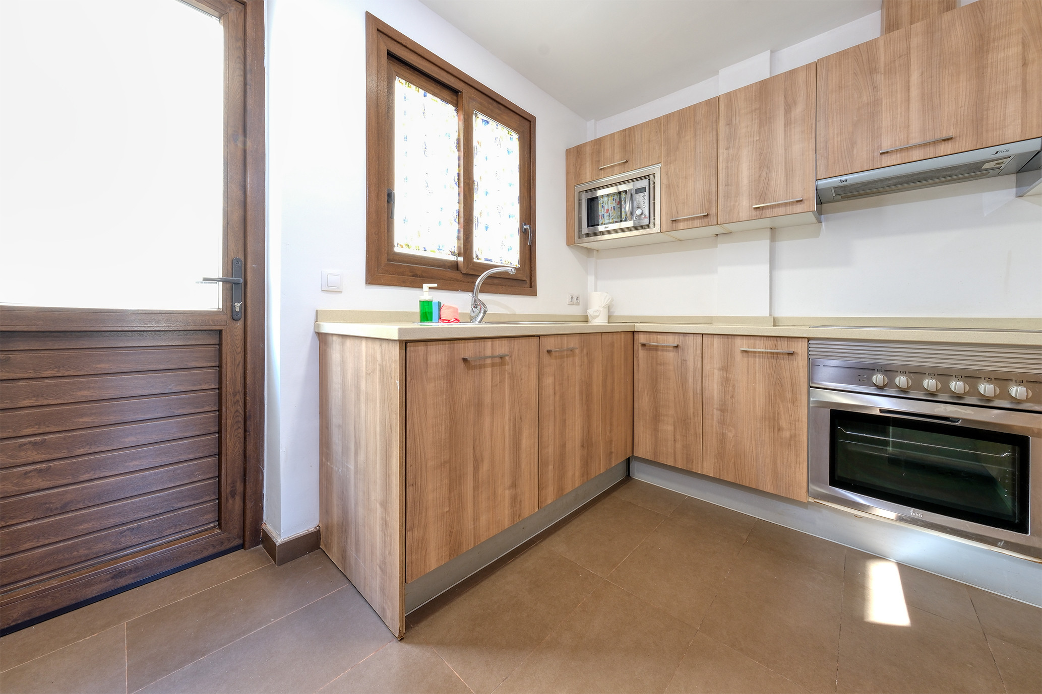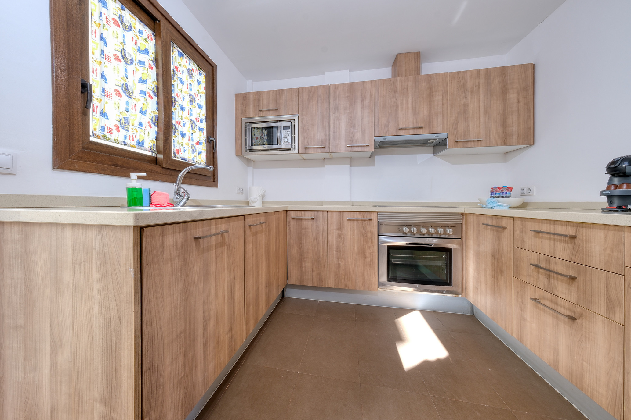 En la planta baja, el acogedor salón cuenta con aire acondicionado, Smart TV y acceso directo a una encantadora terraza, ideal para disfrutar de comidas al aire libre en su zona de comedor exterior. La cocina, independiente y completamente equipada, incluye horno, microondas, cafetera, tostadora, hervidor de agua y todo el menaje necesario para que no tengas que preocuparte por nada. Además, en esta planta encontrarás un aseo adicional y un práctico patio trasero con plancha-grill.