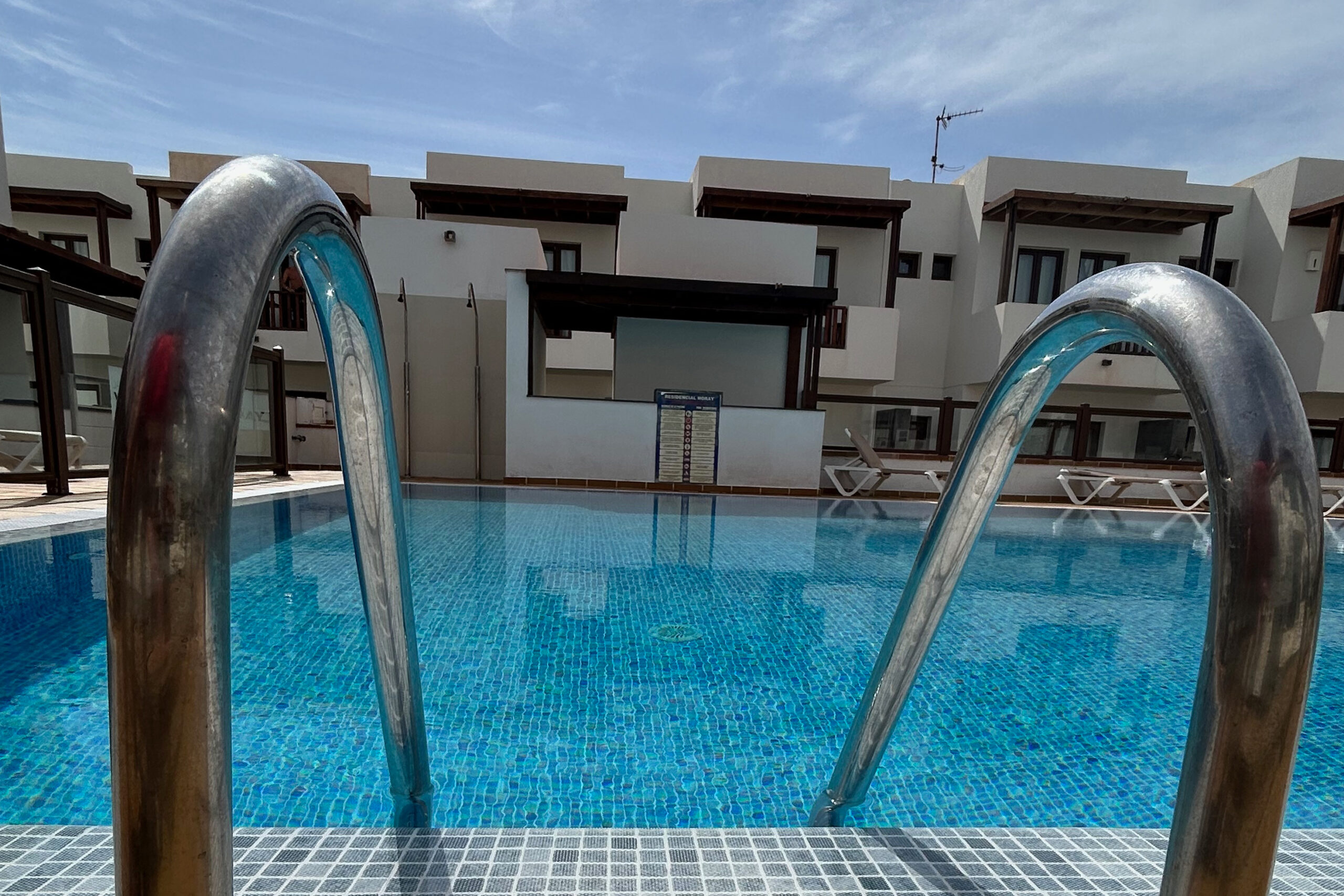 Acceso a la piscina del complejo