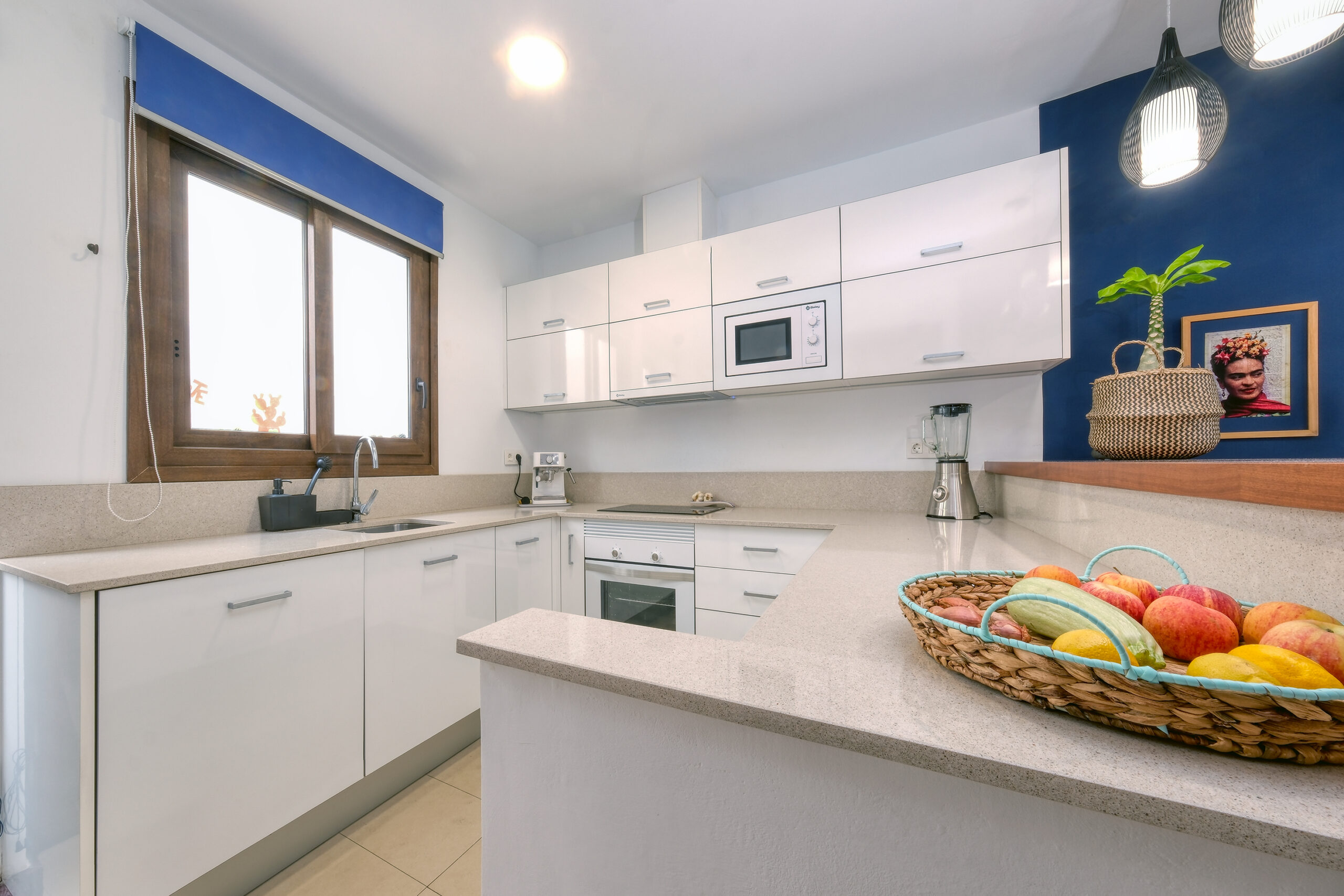 Bienvenido a Casa Bleu, una casa de dos plantas moderna y muy confortable, equipada con todo lo necesario para su bienestar. El dormitorio principal tiene una cama king-size, con canapé para su equipaje y amplios armarios, además tiene acceso a un balcón con confortables asientos y vistas a los volcanes. El segundo dormitorio tiene dos camas individuales y un gran armario. La terraza ofrece una zona de estar al aire libre para relajarse, y el patio le permite cocinar sus platos favoritos en la plancha. Nada más llegar, podrá relajarse en la piscina de la residencia Noray. Situada en la tranquila zona residencial de Puerto Calero, la casa se encuentra junto al nuevo centro deportivo hiperequipado, y a sólo 600 m del magnífico puerto deportivo con todas sus comodidades, restaurantes, tiendas de marca, puntos de reserva para excursiones por mar o por este magnífico suelo volcánico, así como actividades deportivas. Aparcamiento gratuito para su coche delante de la residencia y a 7 km del campo de golf.