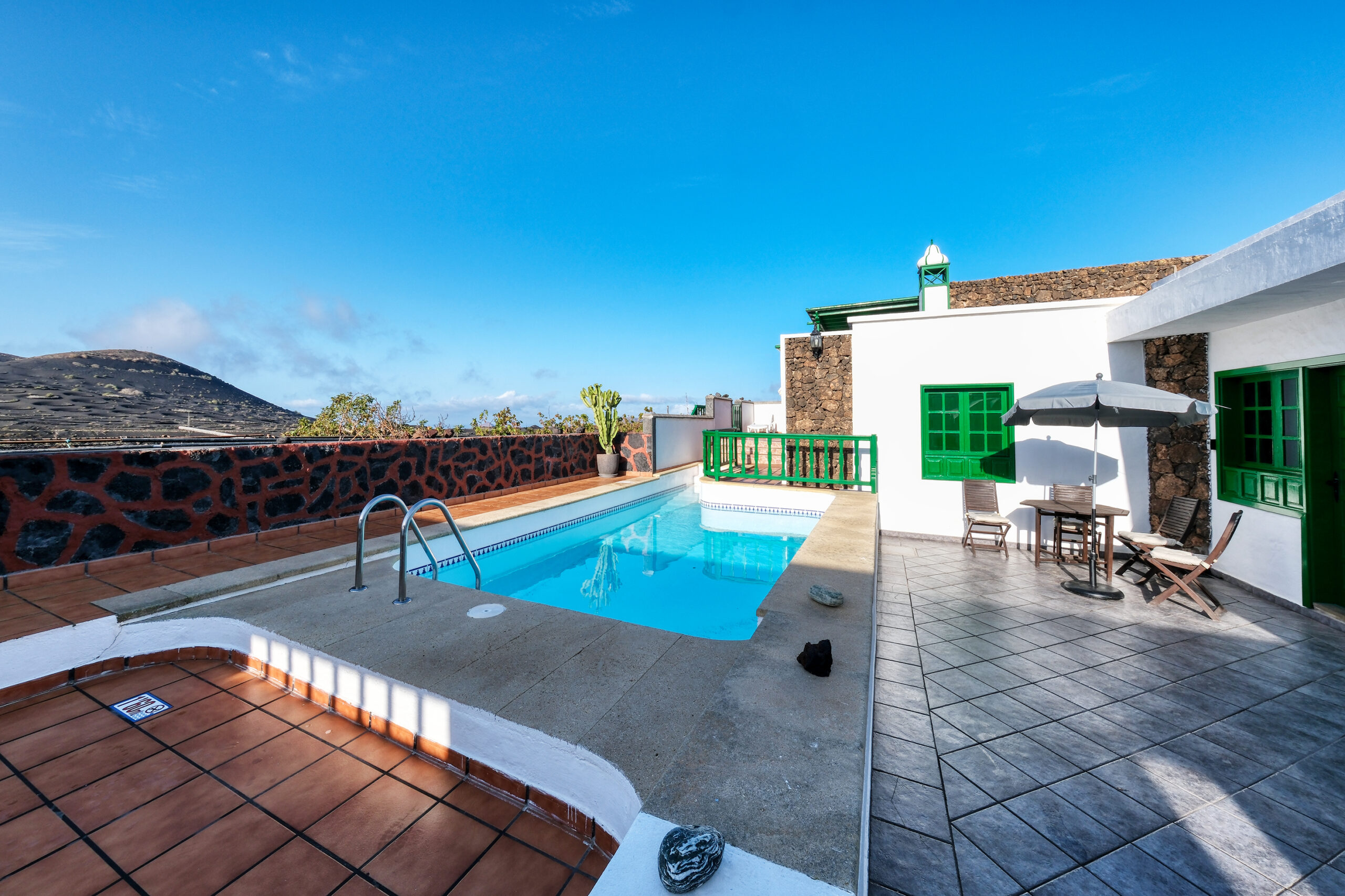 Casa Rural de 2 dormitorios, terraza independiente y piscina compartida en una finca de 50.000 m² con vistas al Parque Nacional de Timanfaya.