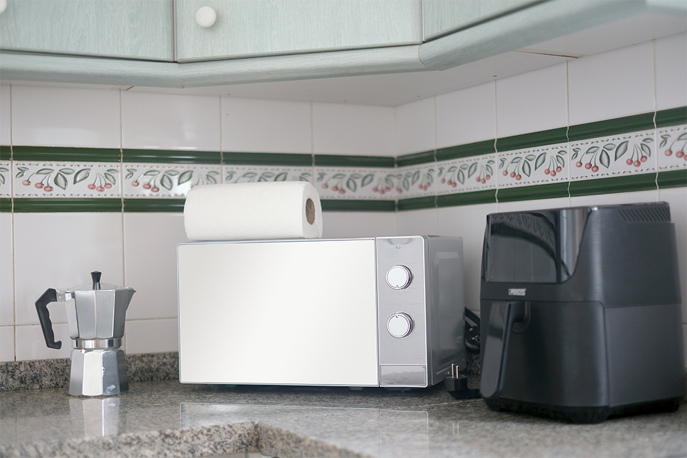 La cocina americana totalmente equipada incluye vitrocerámica, horno, microondas, nevera, cafetera, tostadora, freidora de aire y todo lo necesario para preparar deliciosas comidas como en casa.