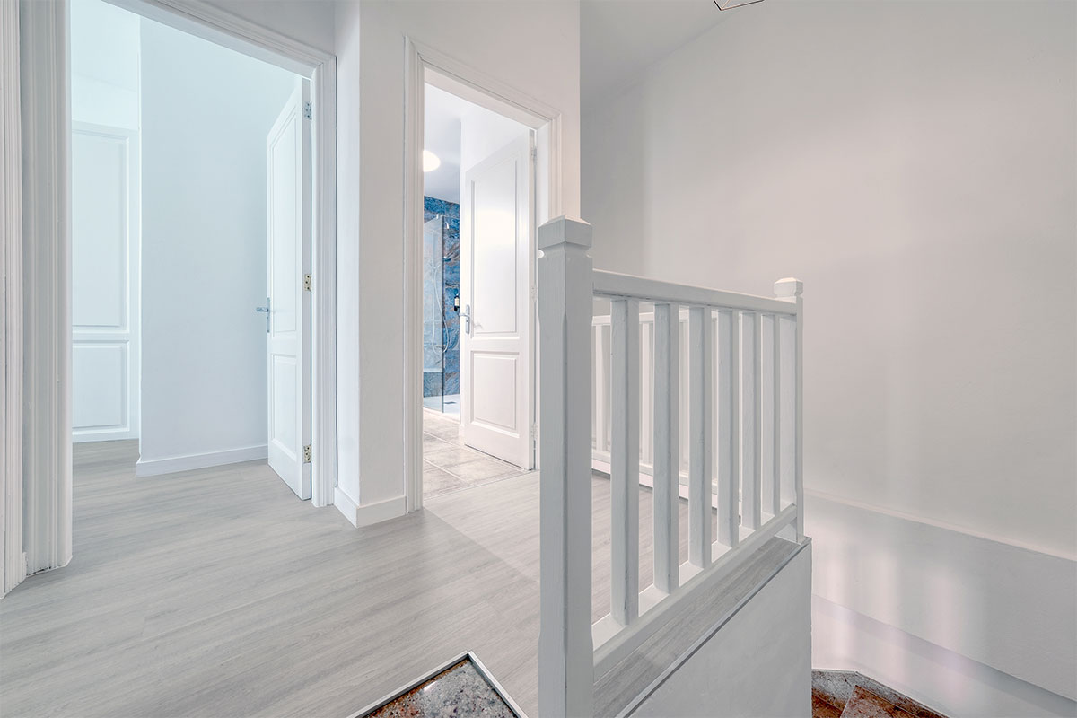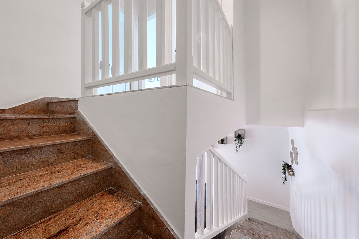 En la planta superior se ubica la zona de noche, con dos acogedoras habitaciones: una con cama de matrimonio, ideal para descansar tras un día de sol, y otra con una cómoda cama individual y balcón privado, perfecta para quien viaja en familia o con amigos. En esta misma planta encontrarás el baño completo, con un práctico plato de ducha y secador de pelo, pensado para tu confort. Además, ponemos a tu disposición una lavadora, plancha y tabla de planchar, un ventilador, así como sábanas y toallas tanto de ducha como de playa para que viajes ligero y disfrutes sin preocupaciones.