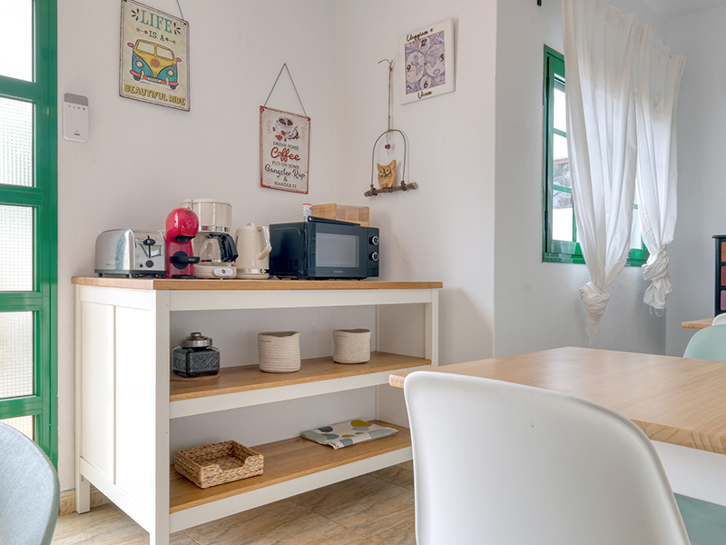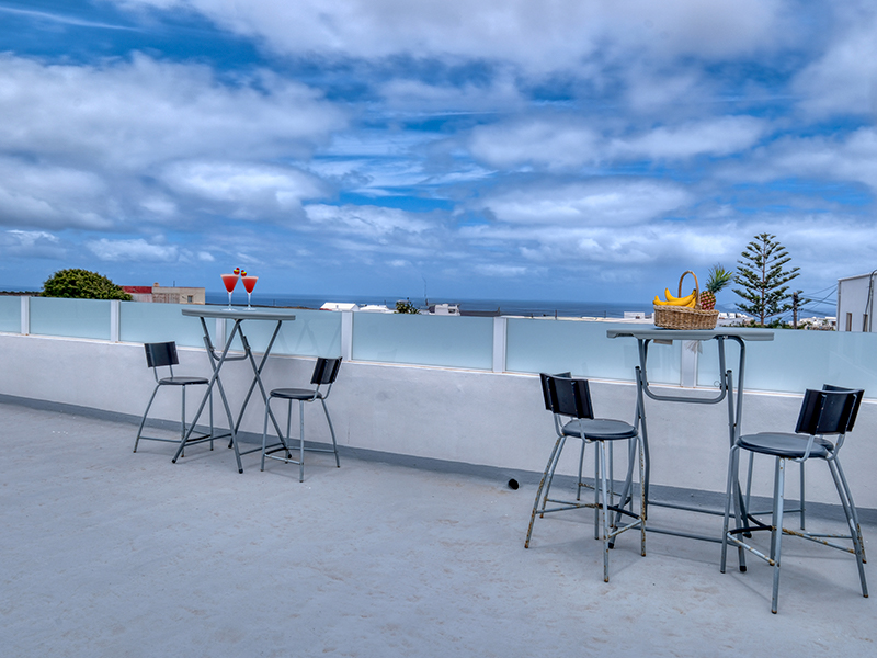 El salón común ofrece un espacio cómodo con un sofá y butacas, ideal para relajarte tras un día explorando la isla. En el jardín podrás disfrutar de una barbacoa y una mesa para compartir comidas al aire libre en un entorno tranquilo y agradable. En la planta alta, una terraza común con mesas te invita a disfrutar de una copa mientras contemplas el atardecer y las maravillosas vistas que rodean el lugar.