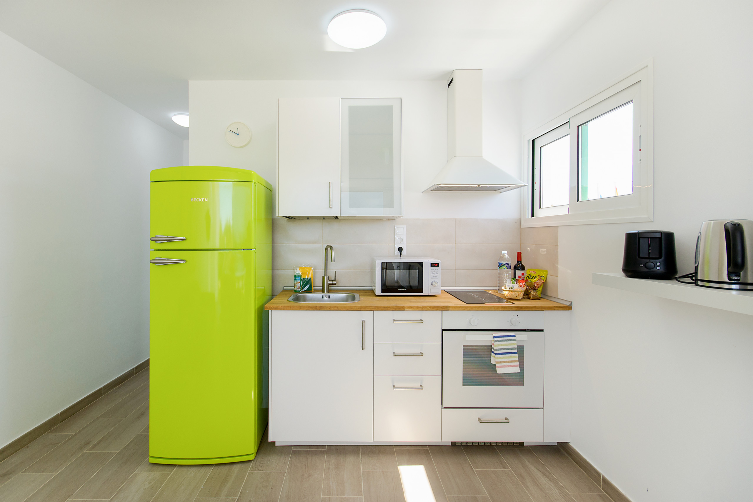 La cocina está totalmente equipada con vitrocerámica, horno, microondas, cafetera, tetera y exprimidor eléctrico, nevera y un completo menaje. Green Volcano ofrece además un baño con ducha y un precioso dormitorio doble que dispone de camas individuales. Se puede aparcar gratis en la calle.