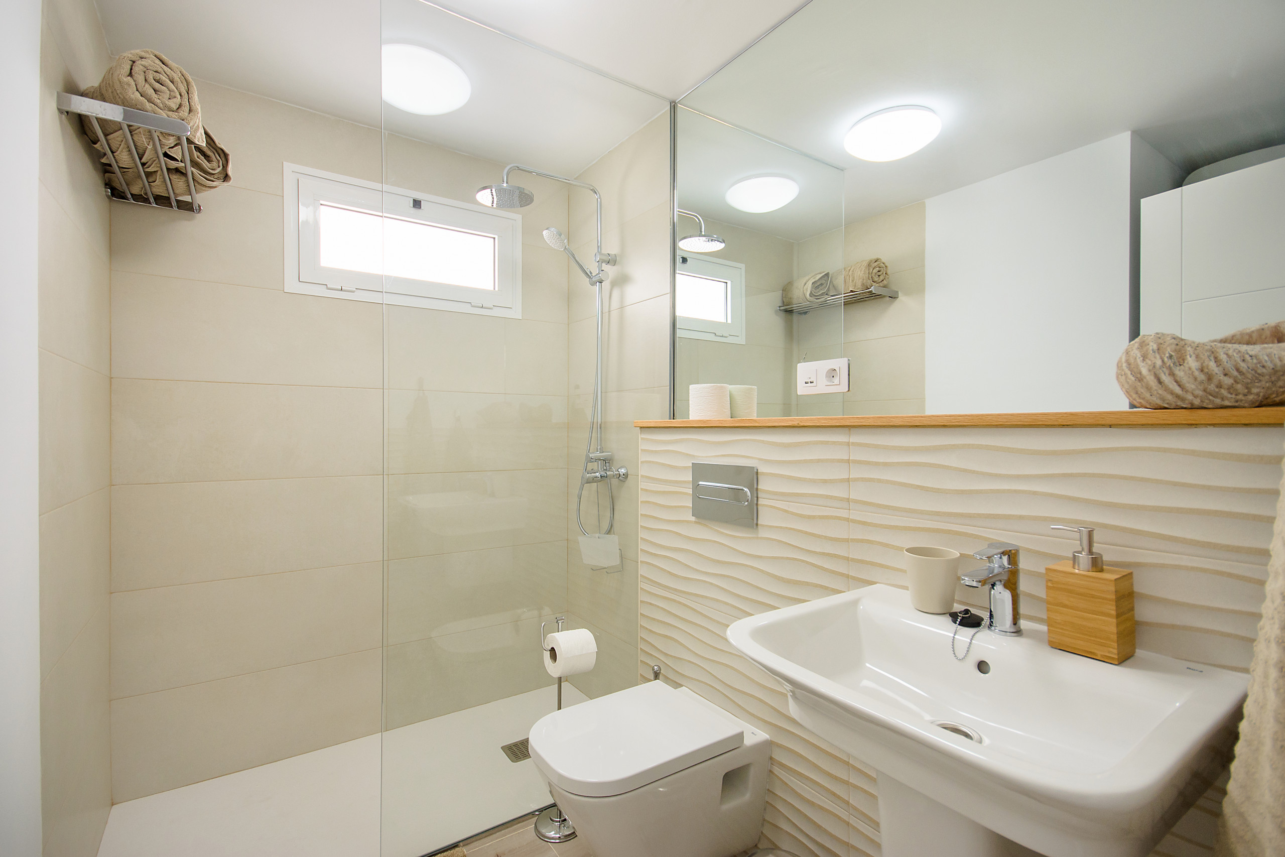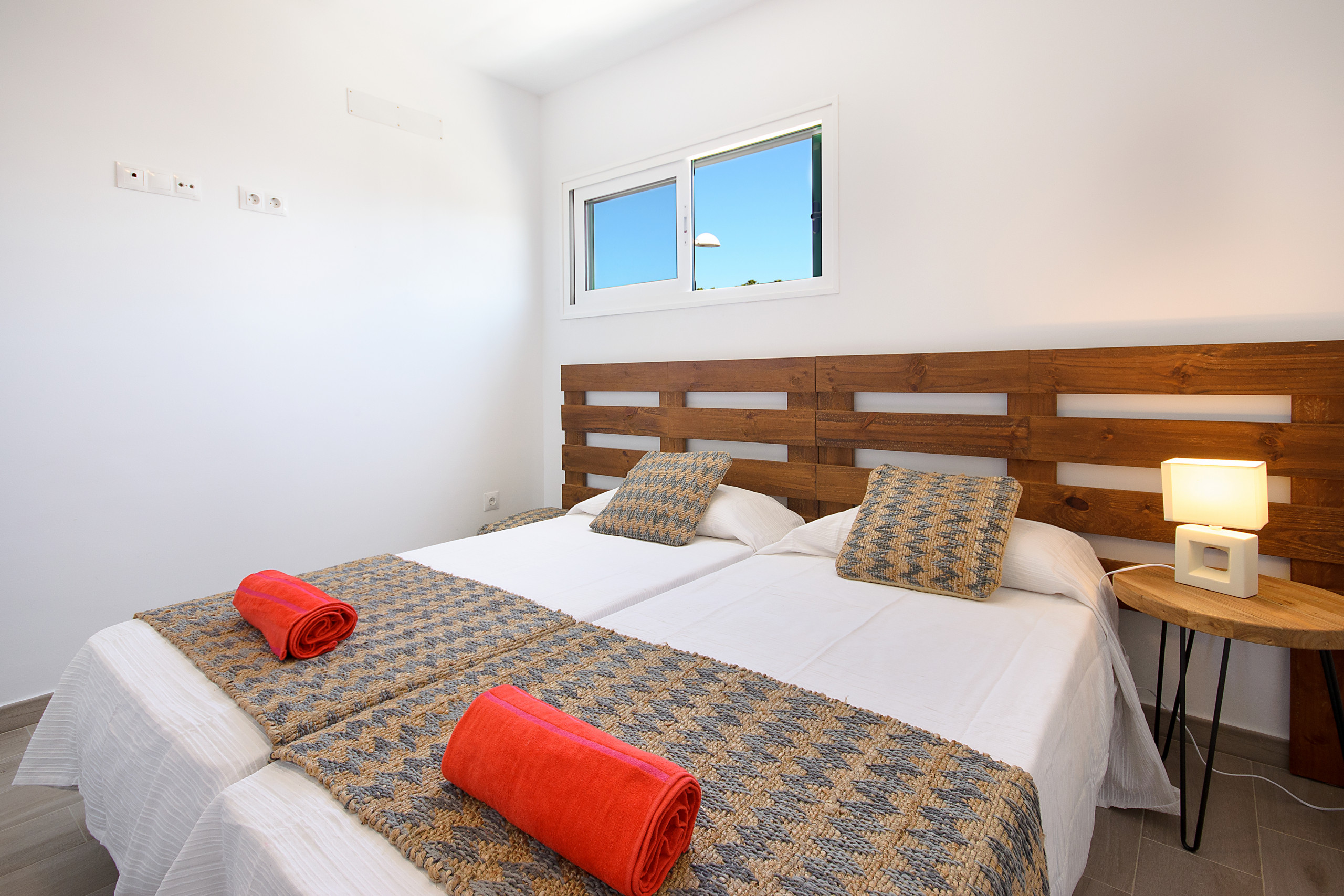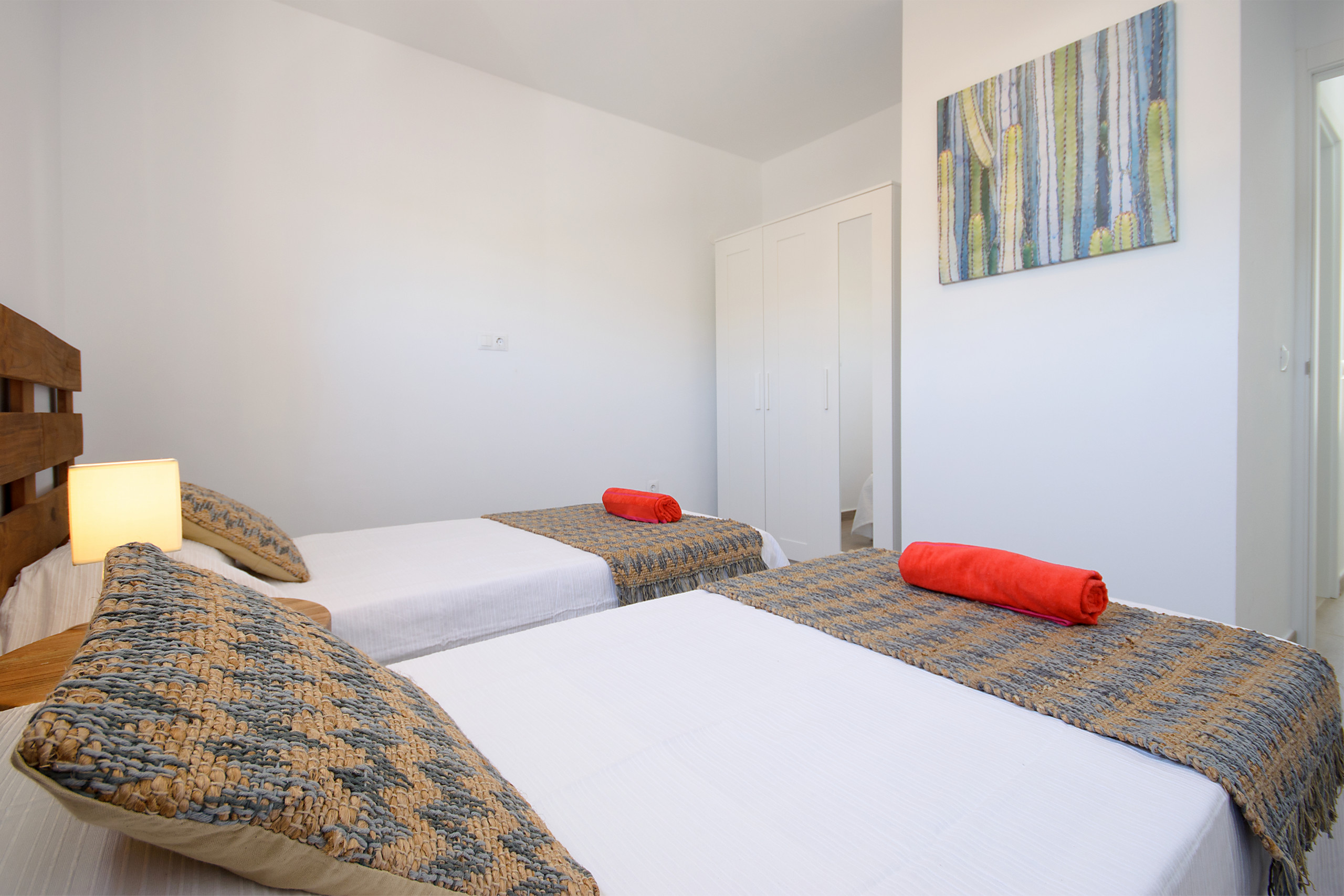 Esta moderna y coqueta vivienda de primera planta consta de 46m² y está decorada con un diseño exclusivo. Cuenta con salón comedor, cocina, un dormitorio doble con camas individuales y un baño con ducha.