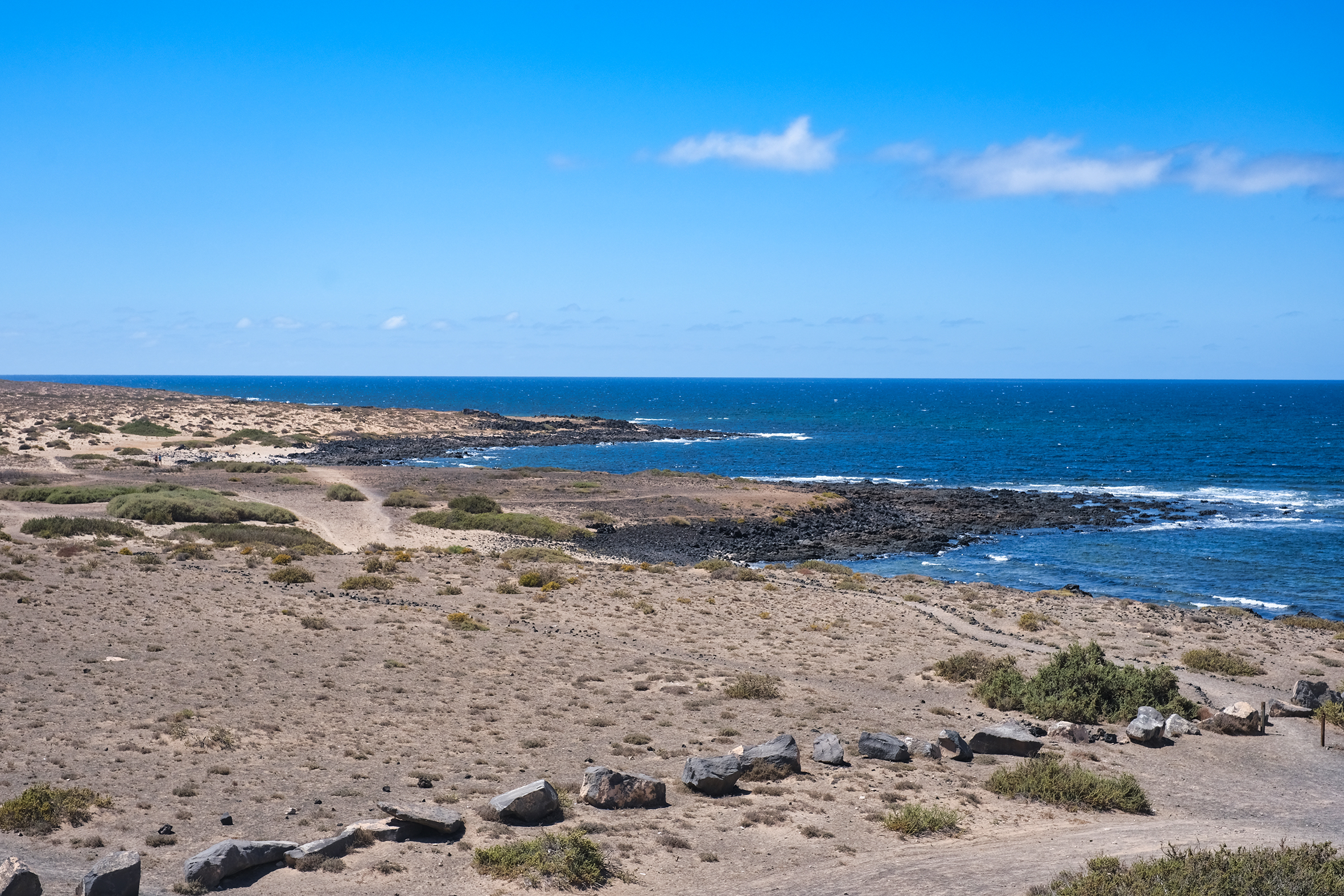 Desde la playa, disfrute de impresionantes vistas de los acantilados de Famara y la isla de La Graciosa, creando uno de los paisajes más emblemáticos de las Islas Canarias.
