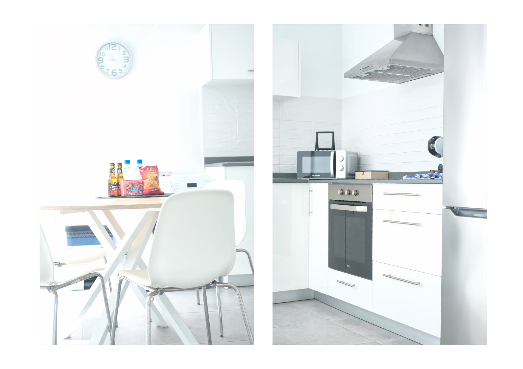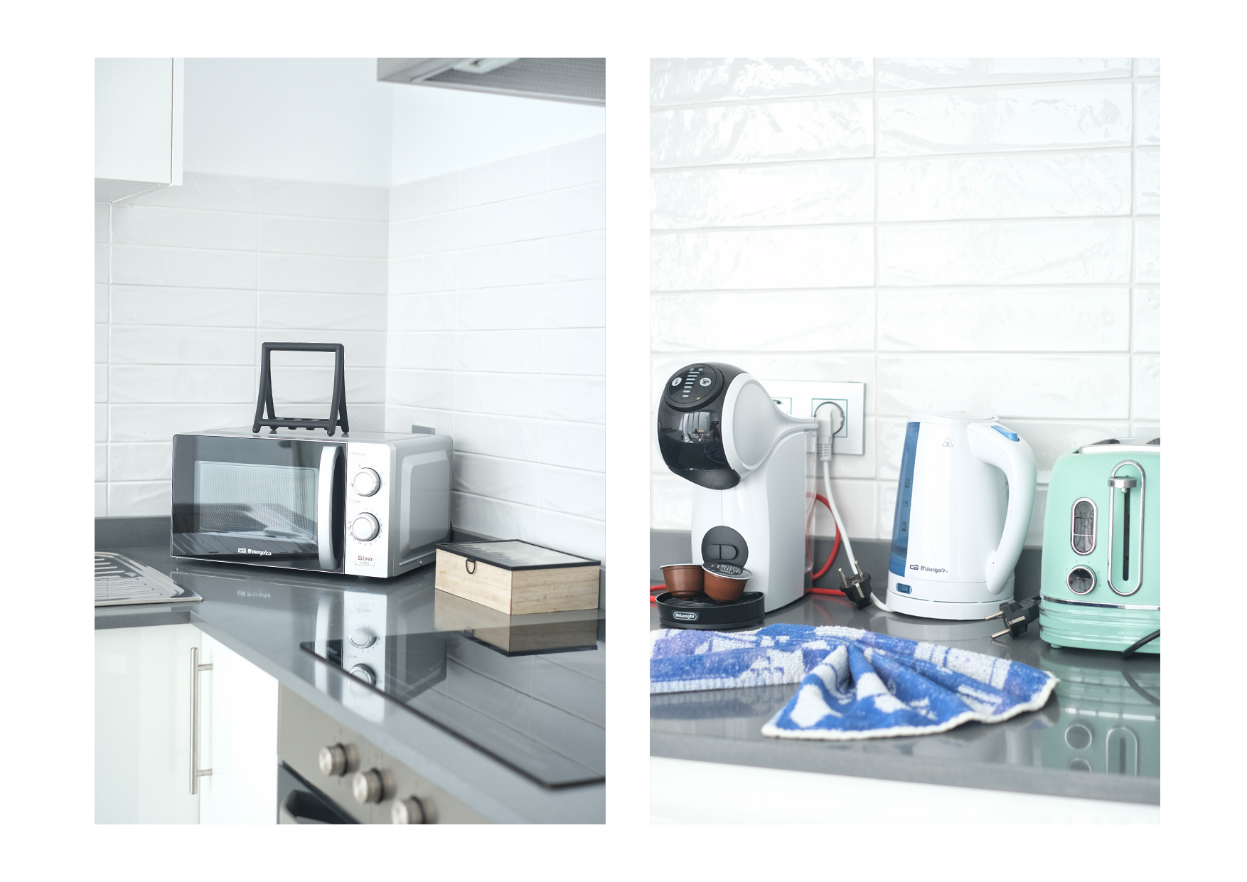 Cocina completamente equipada, incluye máquina de café de cápsulas, tostadora, hervidor, microondas, cocina y nevera