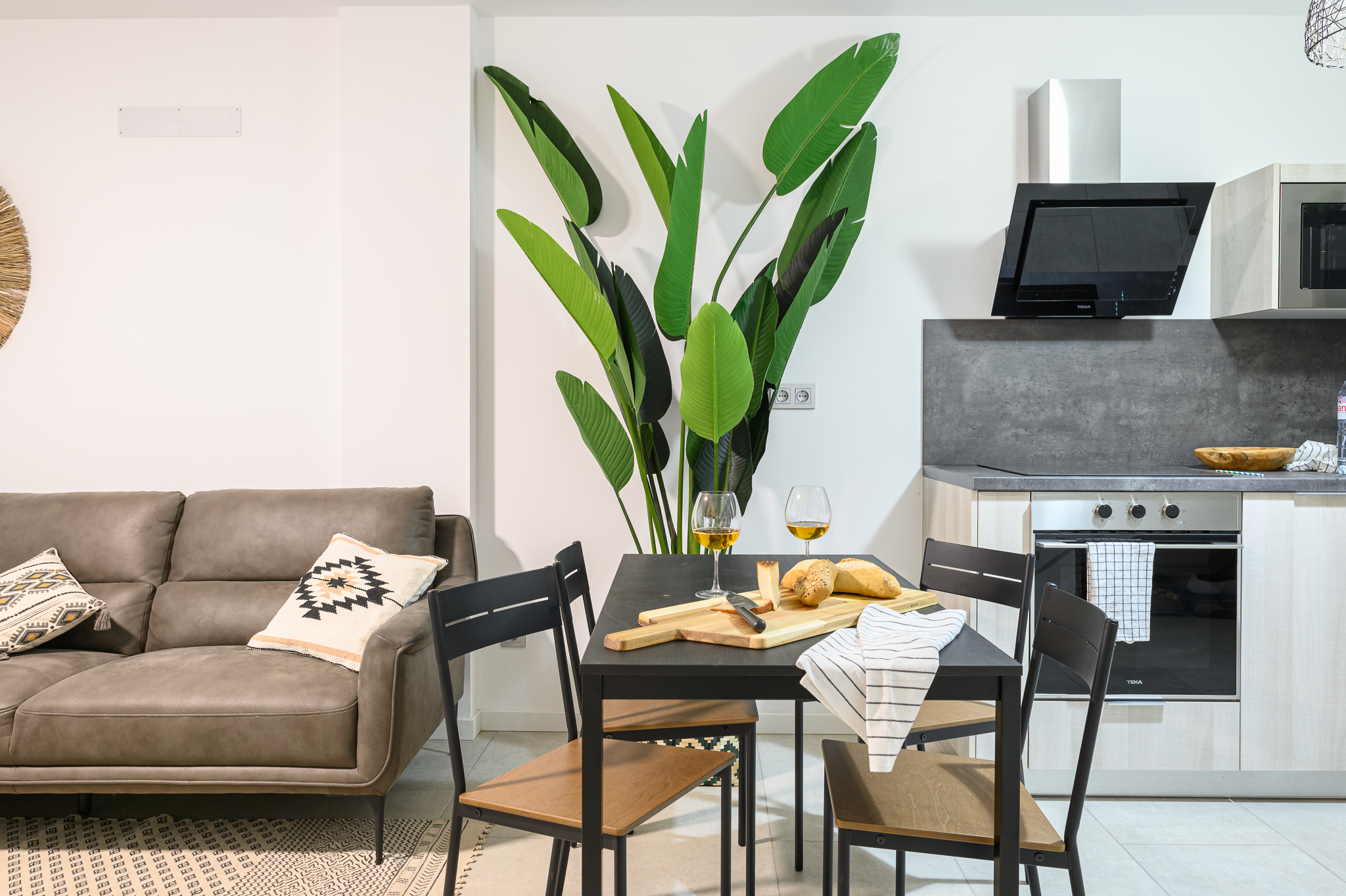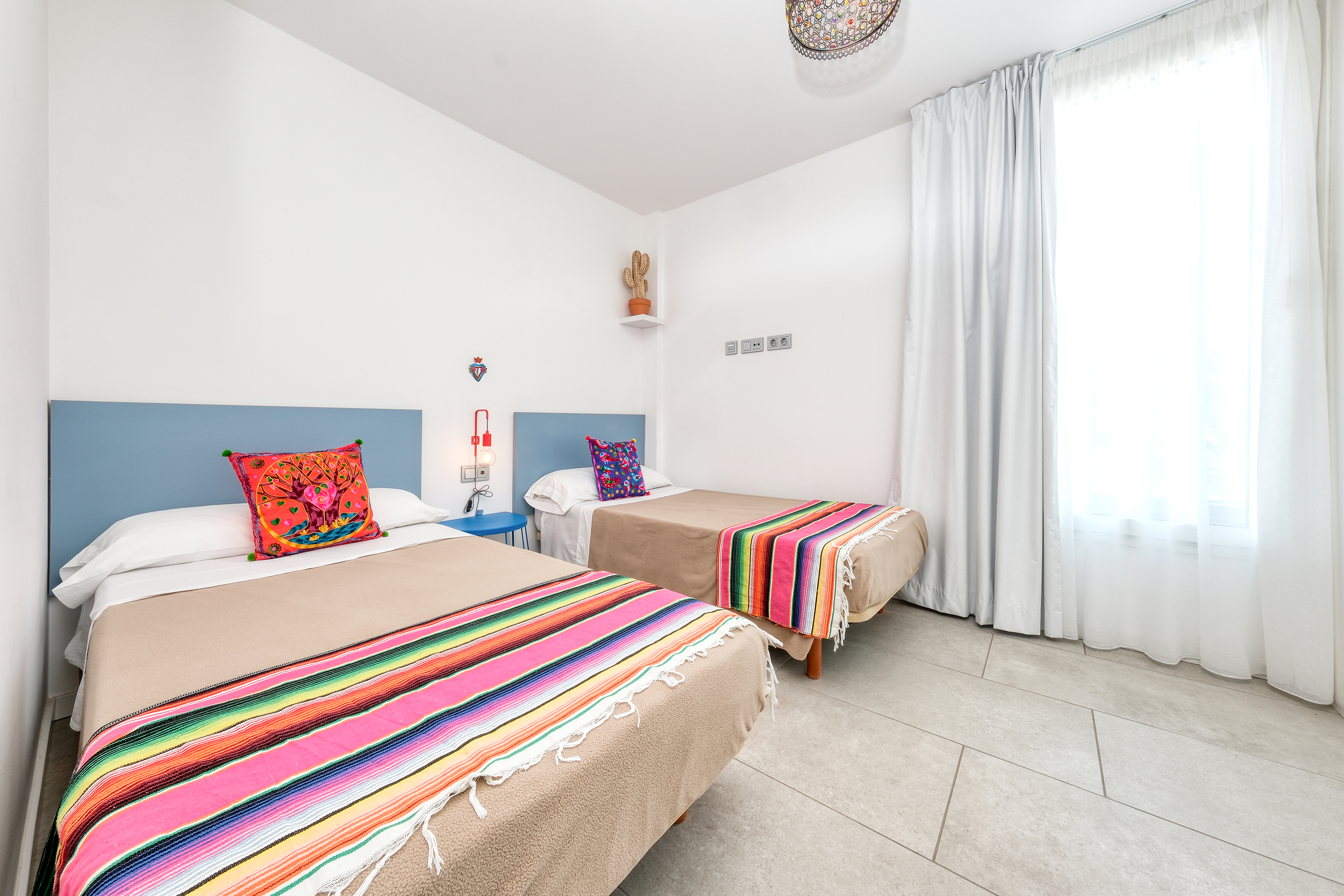 Con casi 100 m² distribuidos en dos plantas y una encantadora decoración de estilo bohemio, ofrece un ambiente cálido y relajante, perfecto tanto para familias como para grupos de amigos.