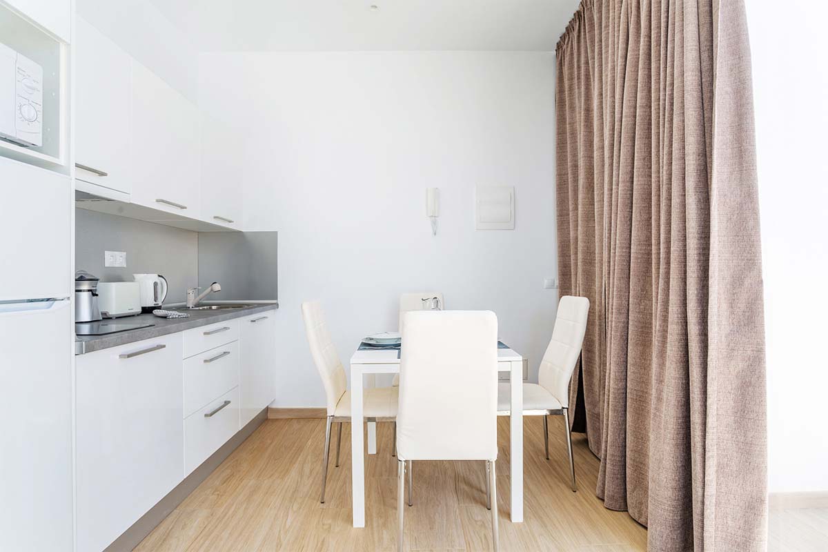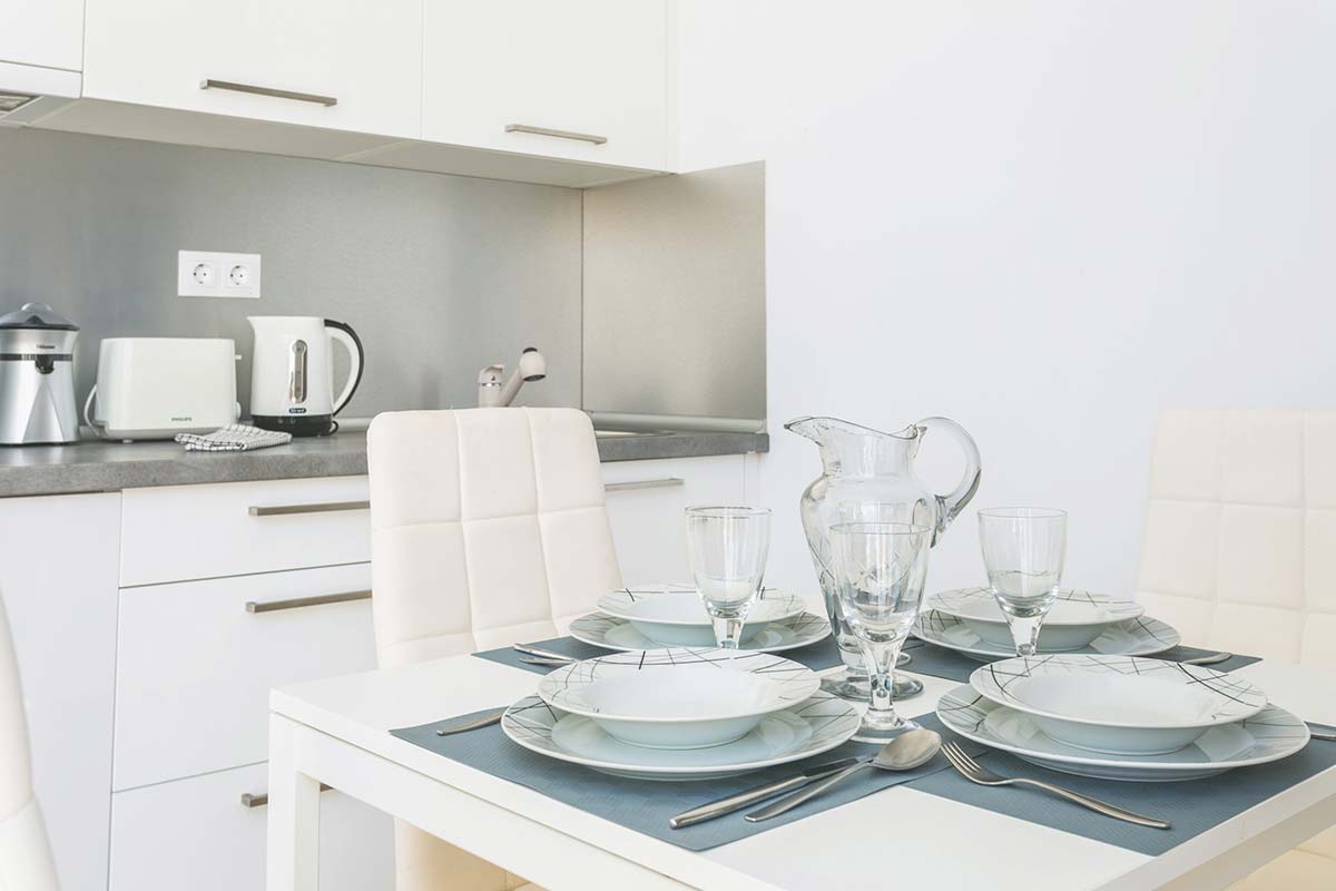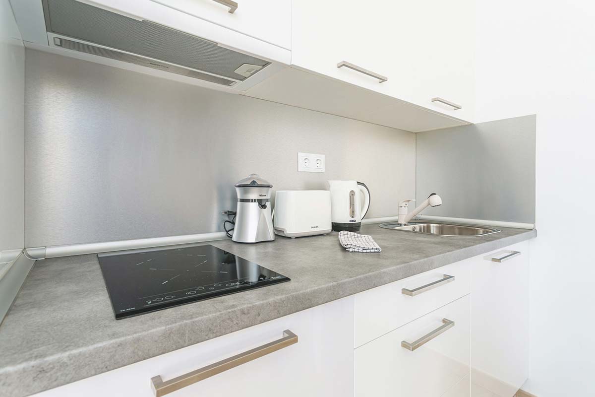 La cocina cuenta con nevera, microondas, vitrocerámica, hervidor de agua, exprimidor, cafetera mokka y tostador. Junto a la cocina hay un cuarto de lavandería que dispone de lavadora, tendedero y útiles de limpieza como escoba, fregona, cubo, regogedor..etc