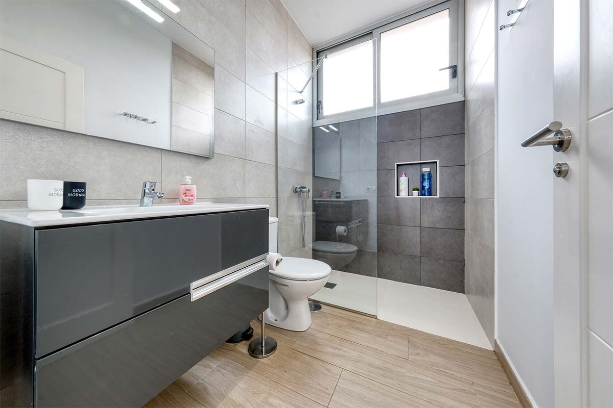 El baño cuenta con plato de ducha.
