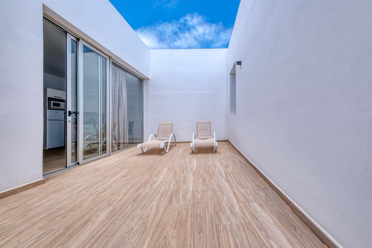 Dispone de una terraza interior de 20 m2 y un patio interior de 30m2.