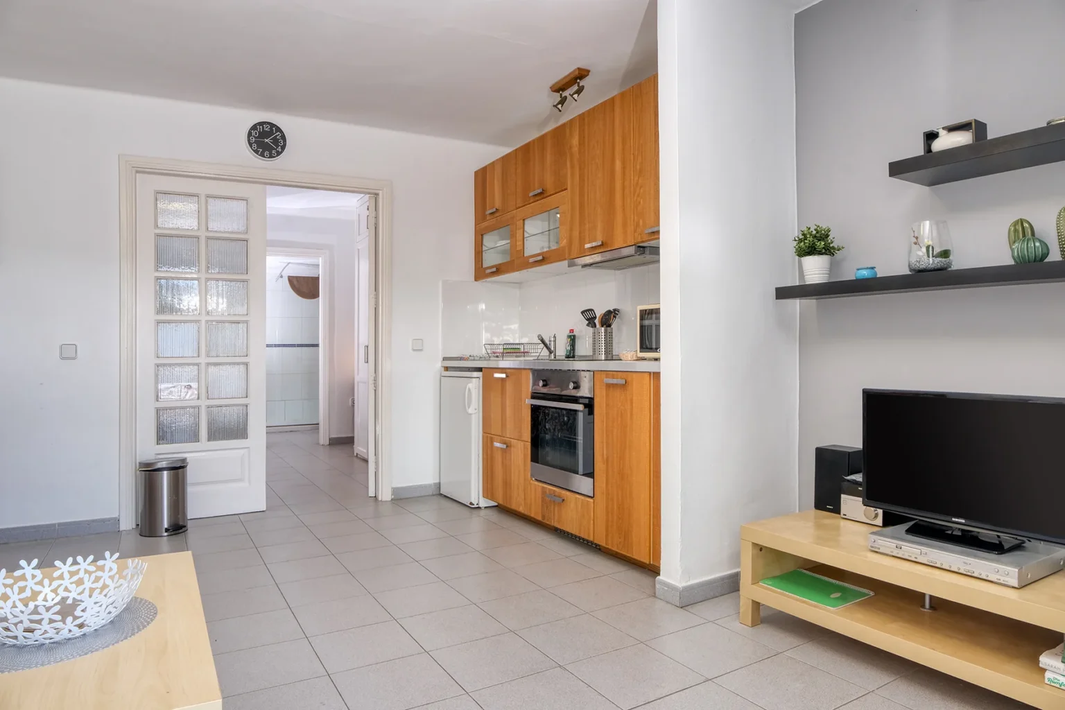 El apartamento cuenta con televisión de pantalla plana con canales internacionales en inglés (BBC/ITV), reproductor de DVD, radio y una buena conexión WiFi, garantizando una estancia cómoda y conectada.