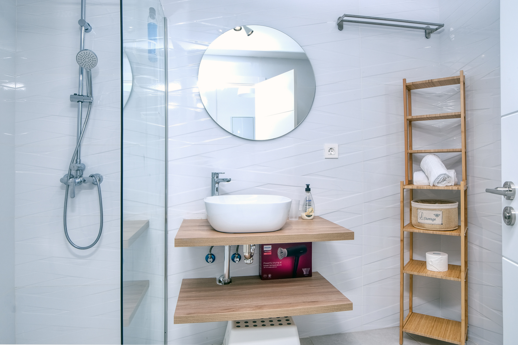 TAMBIÉN HAY UNA LAVADORA, PLANCHA Y TABLA DE PLANCHAR.