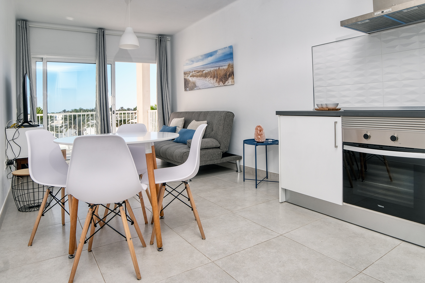 APARTAMENTO DE UN DORMITORIO CON CAMA DOBLE Y SOFÁ CAMA EN EL SALÓN. BAÑO CON PLATO DE DUCHA. COCINA TOTALMENTE EQUIPADA CON HORNO, PLACA DE 4 FUEGOS, MICROONDAS, CAFETERA DE CÁPSULAS, TOSTADORA, ETC