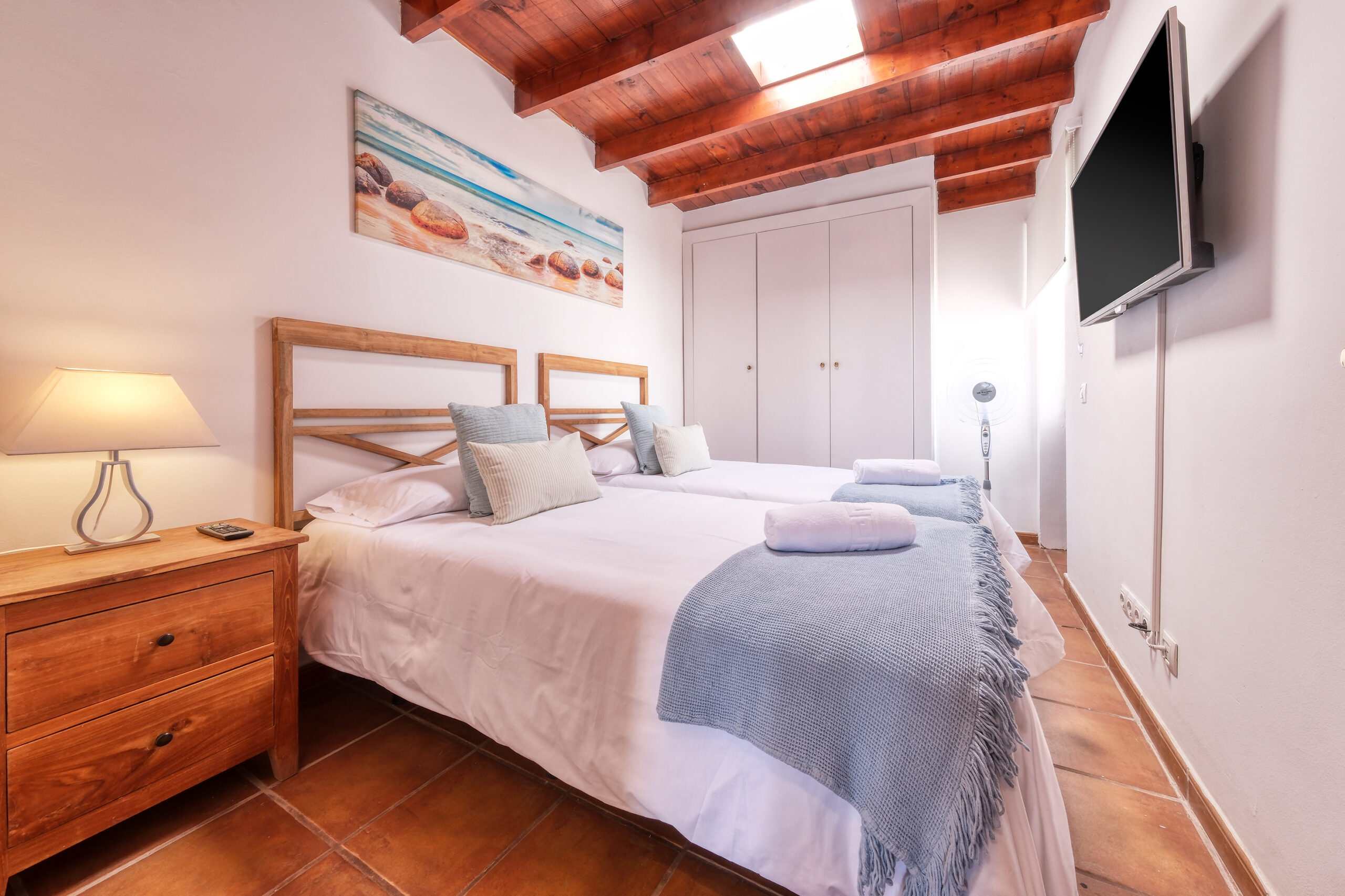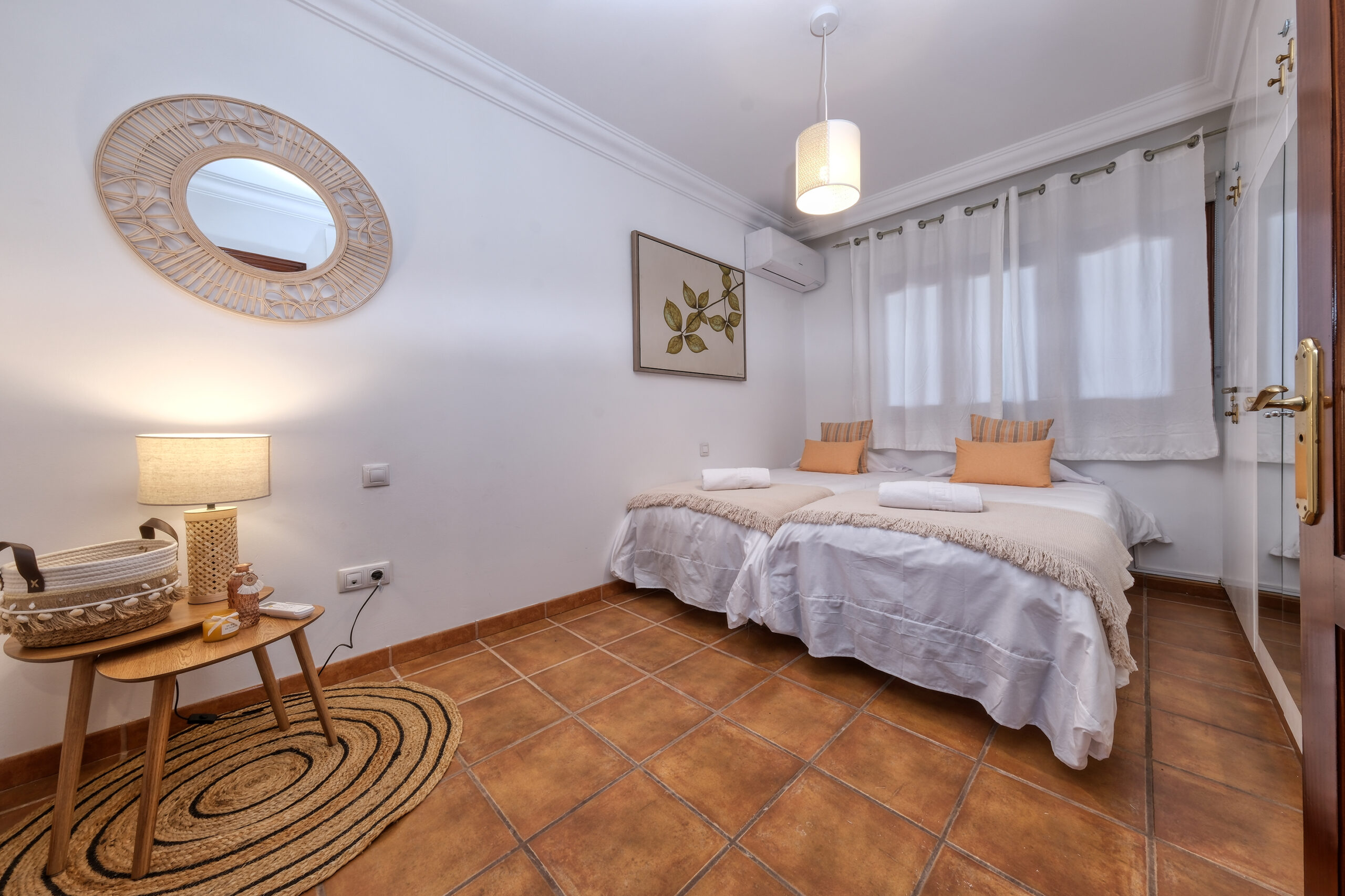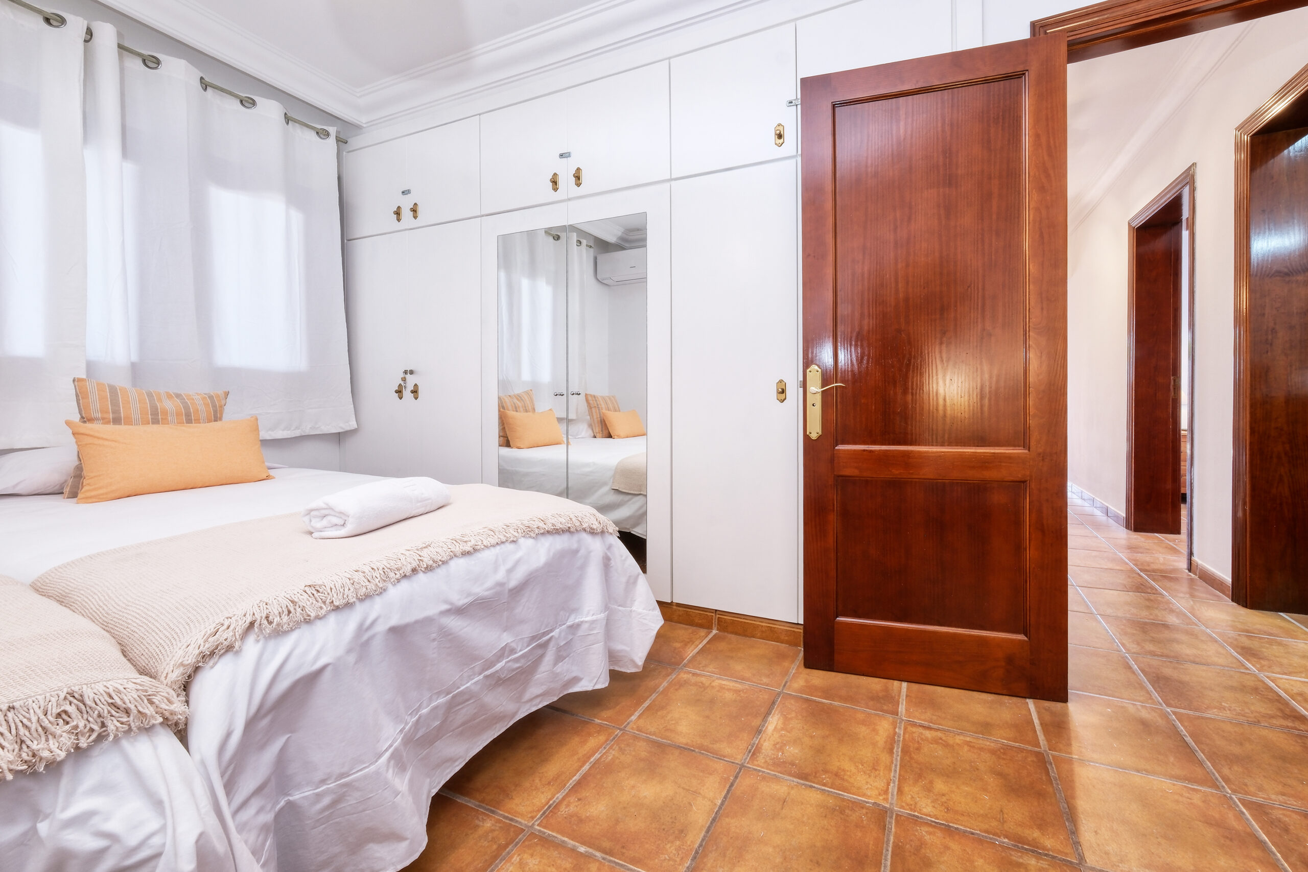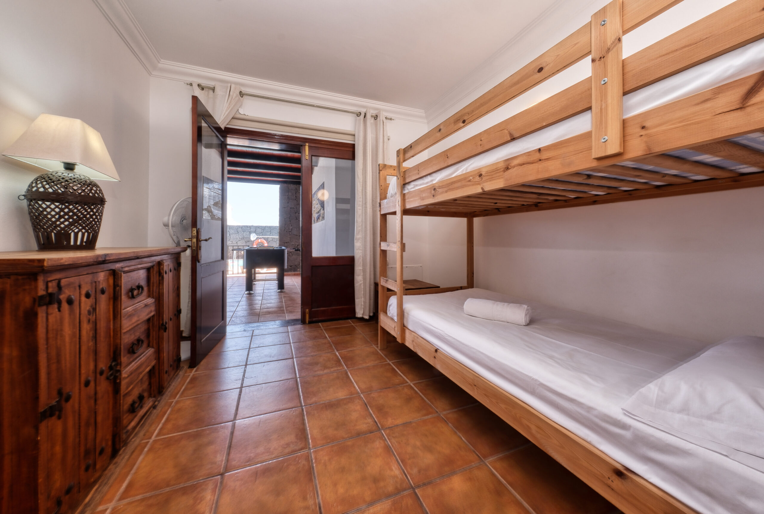 El segundo dormitorio de cama separadas (se pueden unir según necesidad) dispone de ventilador, amplio armario y caja fuerte. En frente tendrán el tercer dormitorio con litera y mesa escritorio. La cuarta habitación también dispone de camas separadas, armario, baño con ducha en-suite y aire acondicionado (con sistema de monedas).