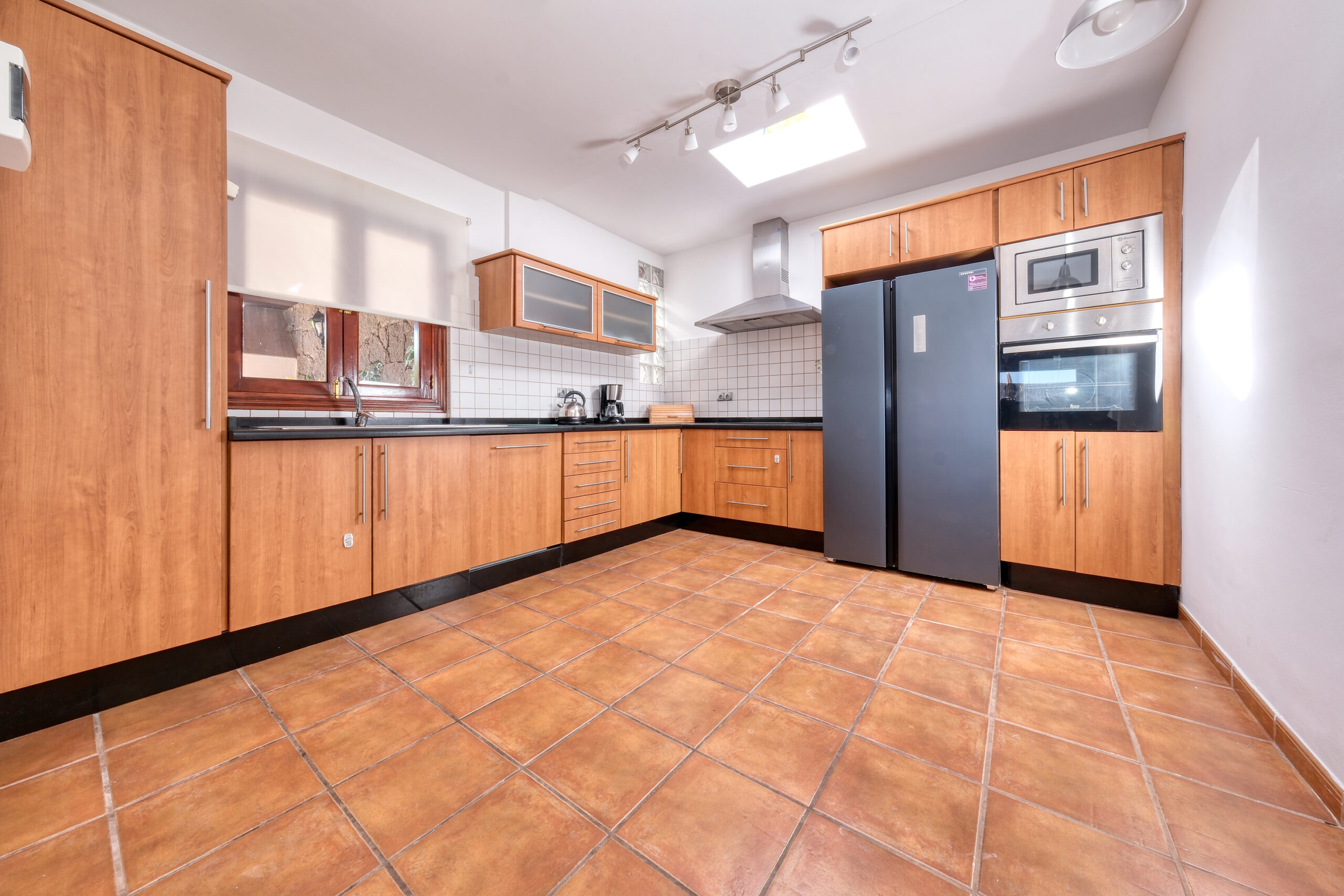 En la entrada de la casa encontrarán un espacioso sofá con vistas a la piscina y televisor smart con canales satélite. Toda la vivienda dispone de Wifi con fibra, ideal también si necesitan teletrabajar. También tiene una cocina muy bien equipada con menaje completo, cuatro fogones, horno, lavavajilla, microondas, nevera, congelador, tostadora, hervidor de agua y cafetera.
