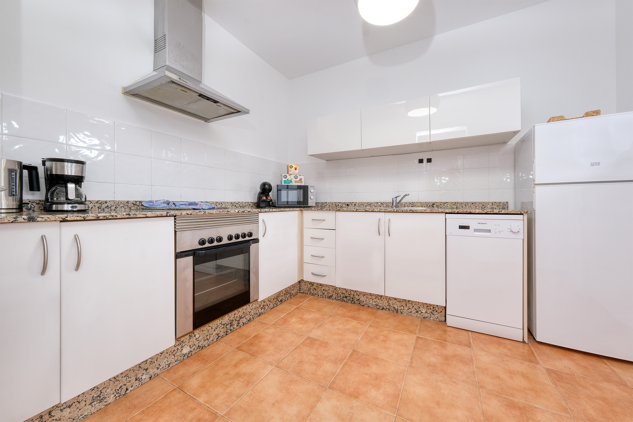 La cocina independiente está totalmente equipada con menaje de alta calidad, vitrocerámica de inducción, horno, microondas, frigorífico, lavavajillas, hervidor de agua, batidora, cafetera y Nespresso.