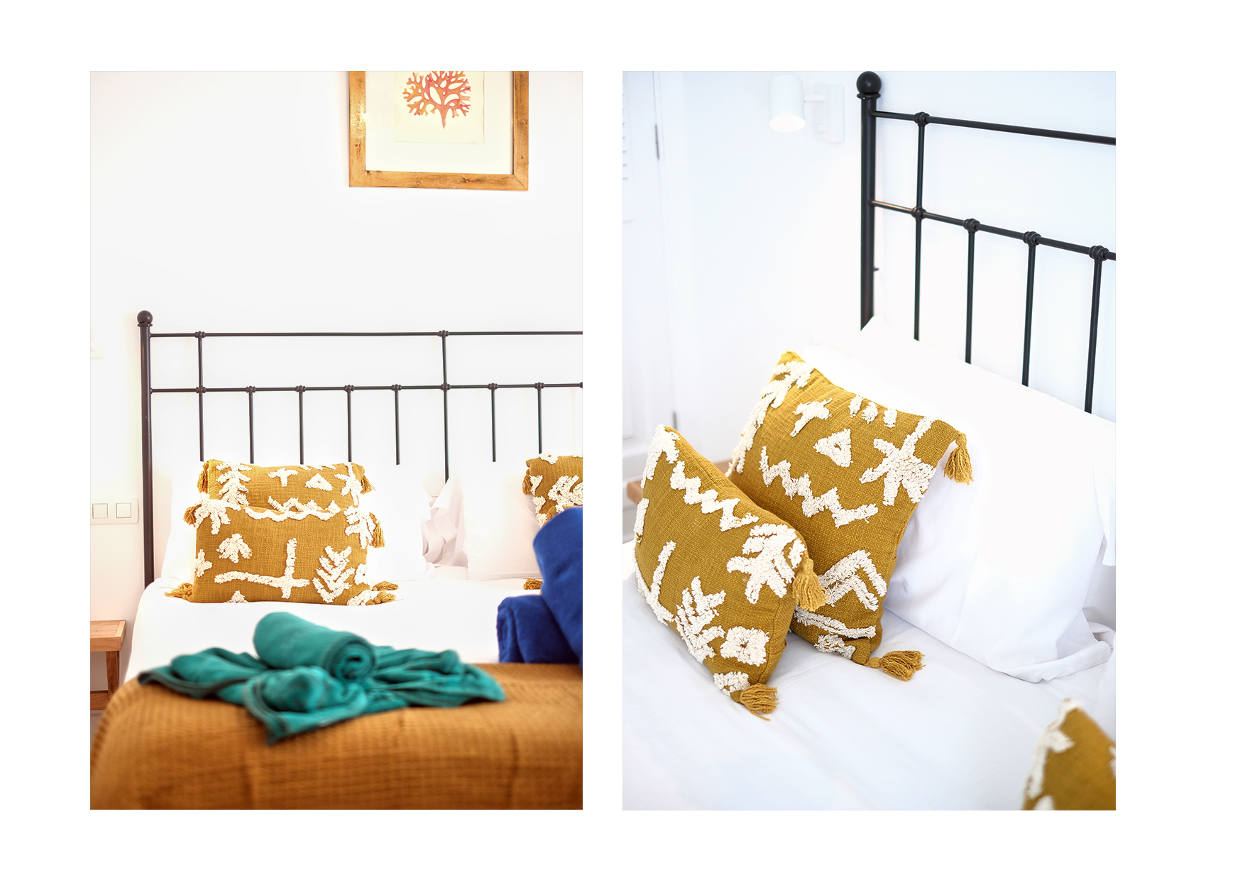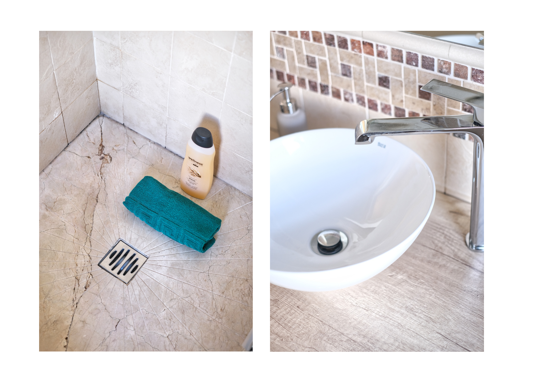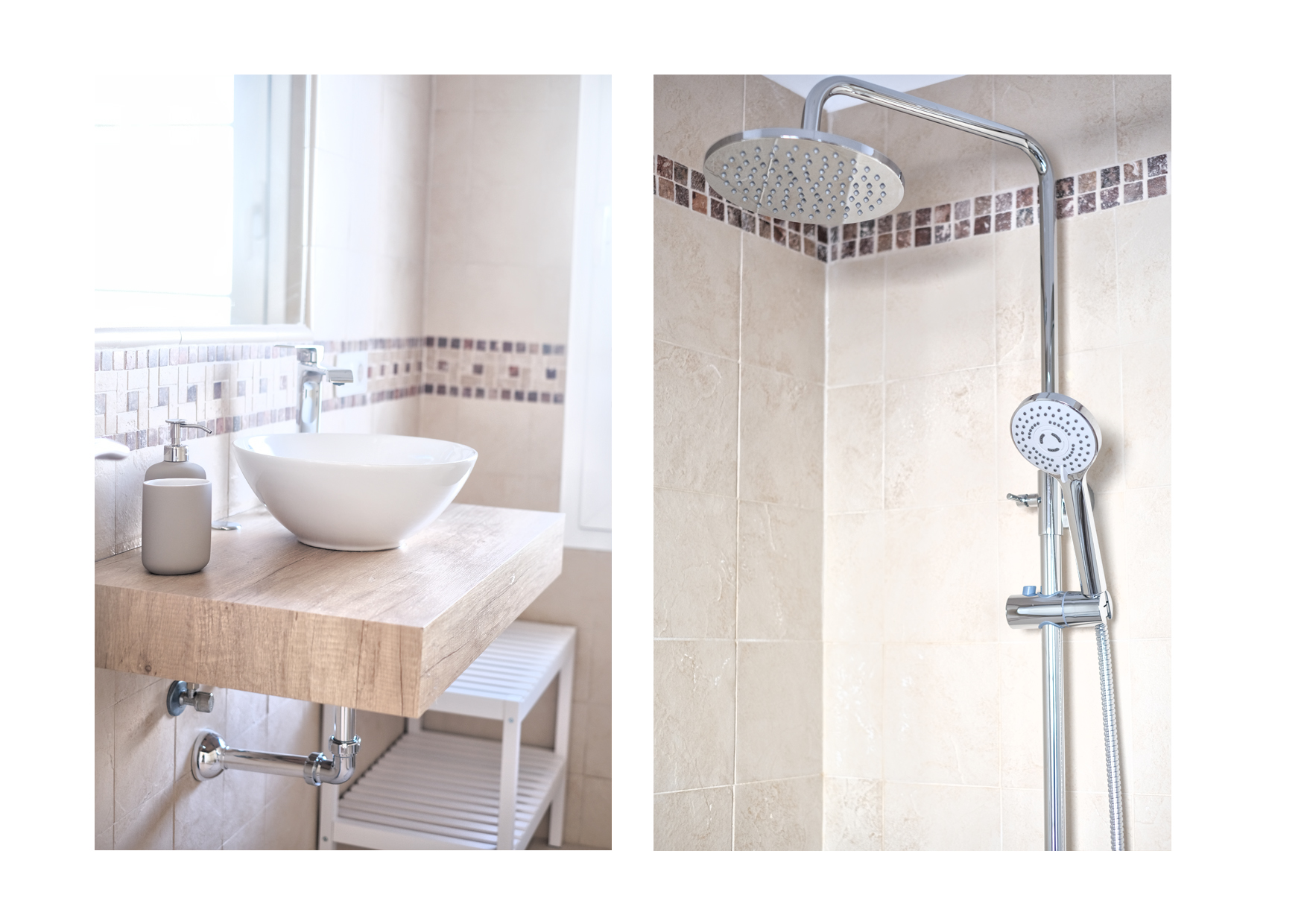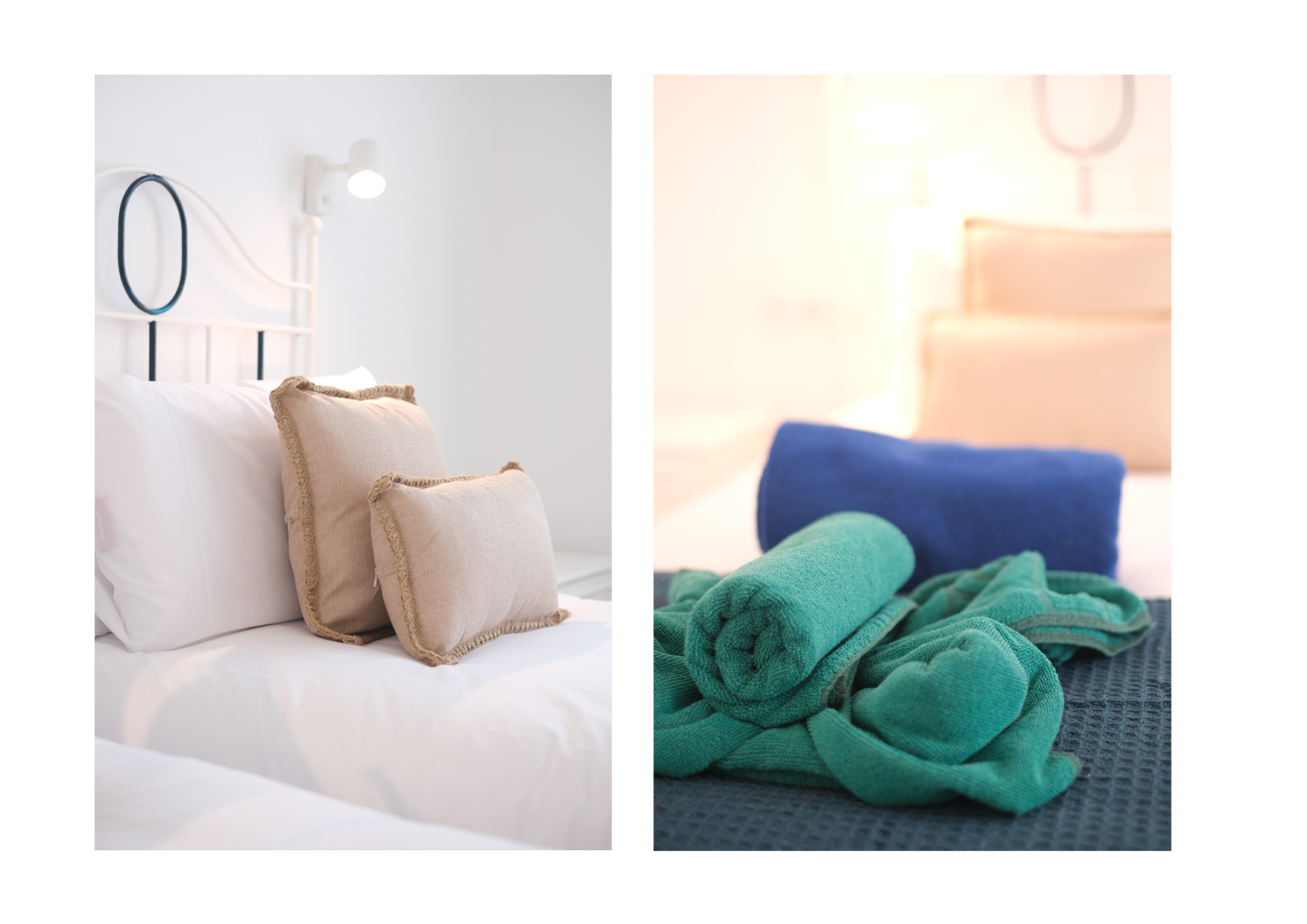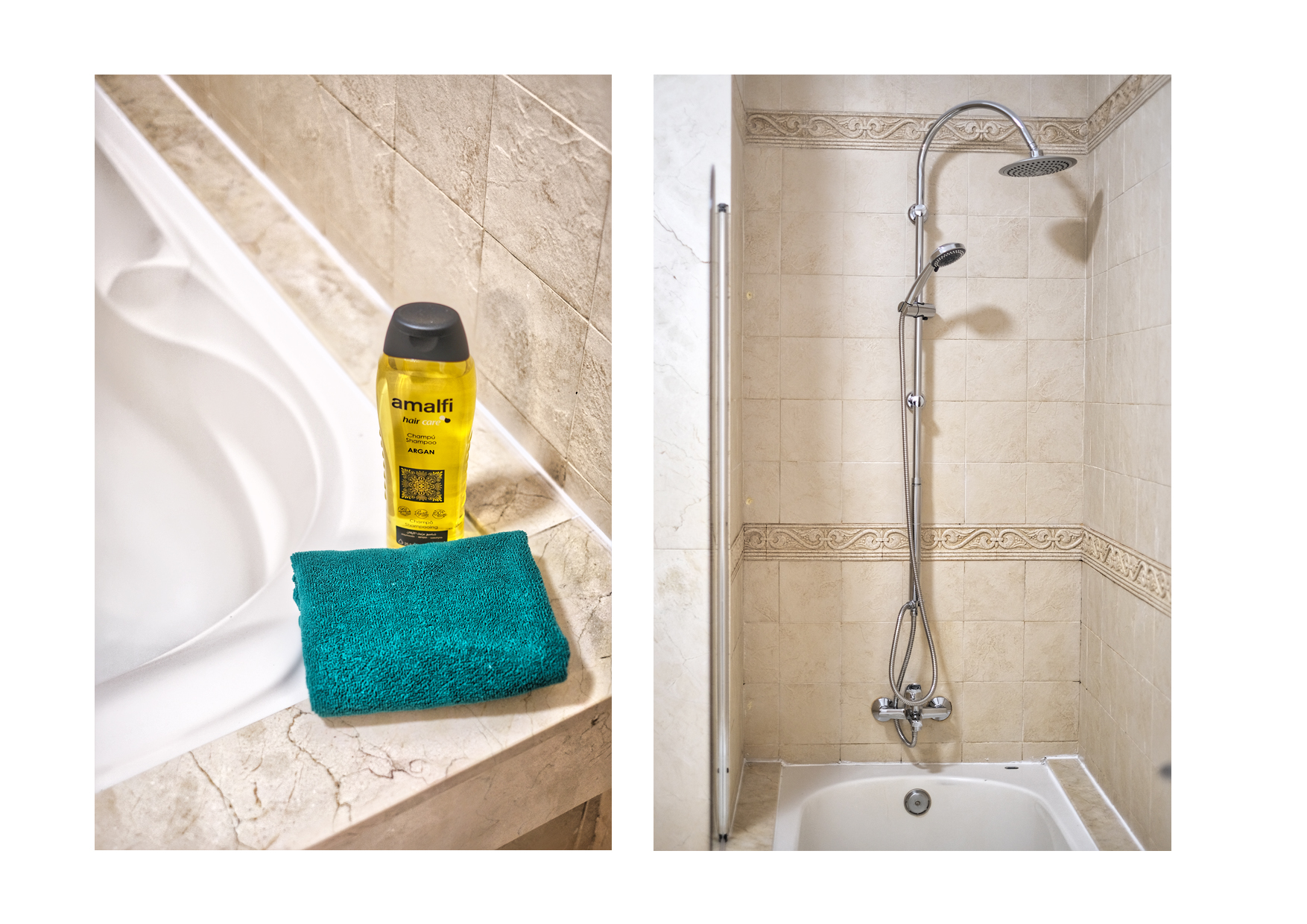 El primer dormitorio cuenta con dos camas individuales, aire acondicionado, televisor, armario empotrado y baño en suite con ducha y bidet. El segundo dormitorio tiene una cama extra grande(180x190), aire acondicionado, televisor, amplio armario con caja fuerte y baño en suite con bañera. El tercer dormitorio dispone también de una cama extra grande(180x200), aire acondicionado, Smart TV y baño en suite con ducha. En total, la villa cuenta con tres baños completos y un aseo adicional, todos equipados con secador de pelo.