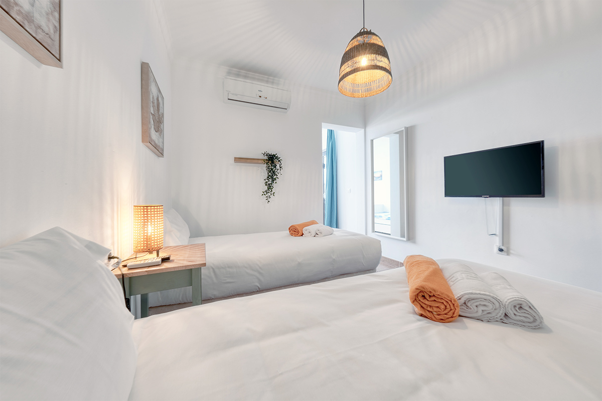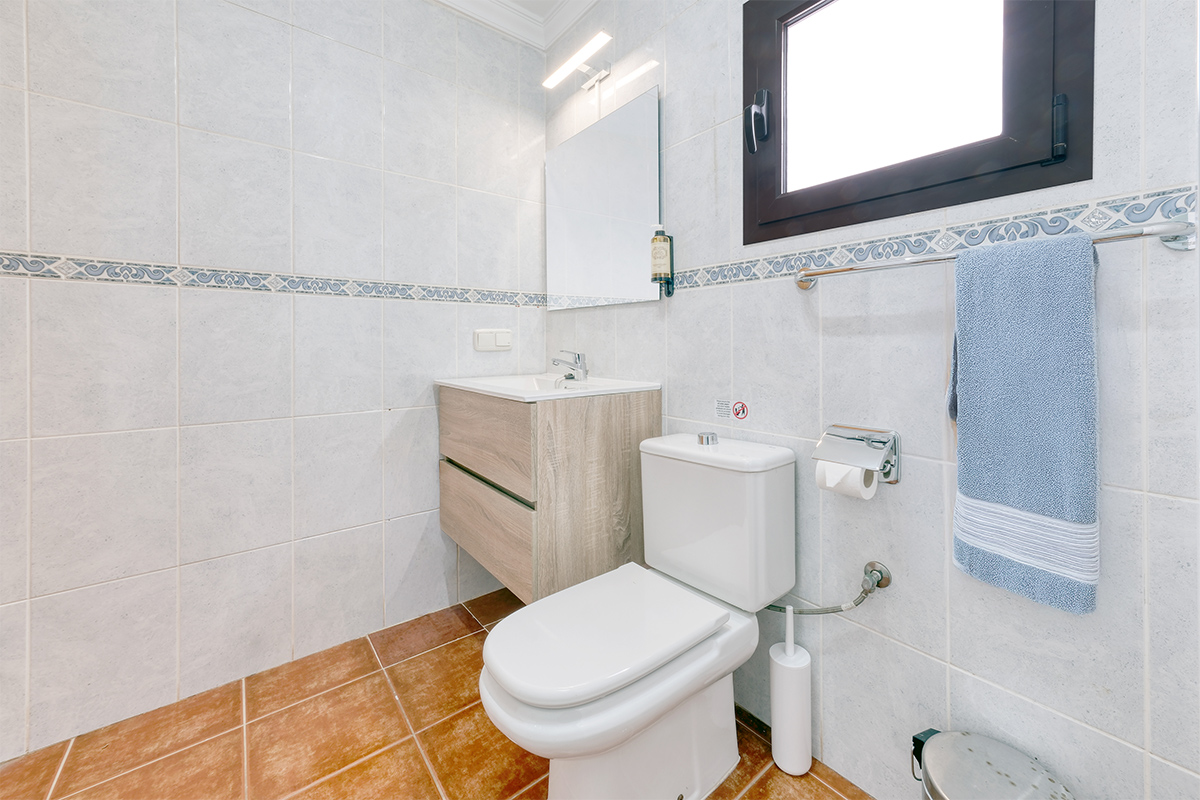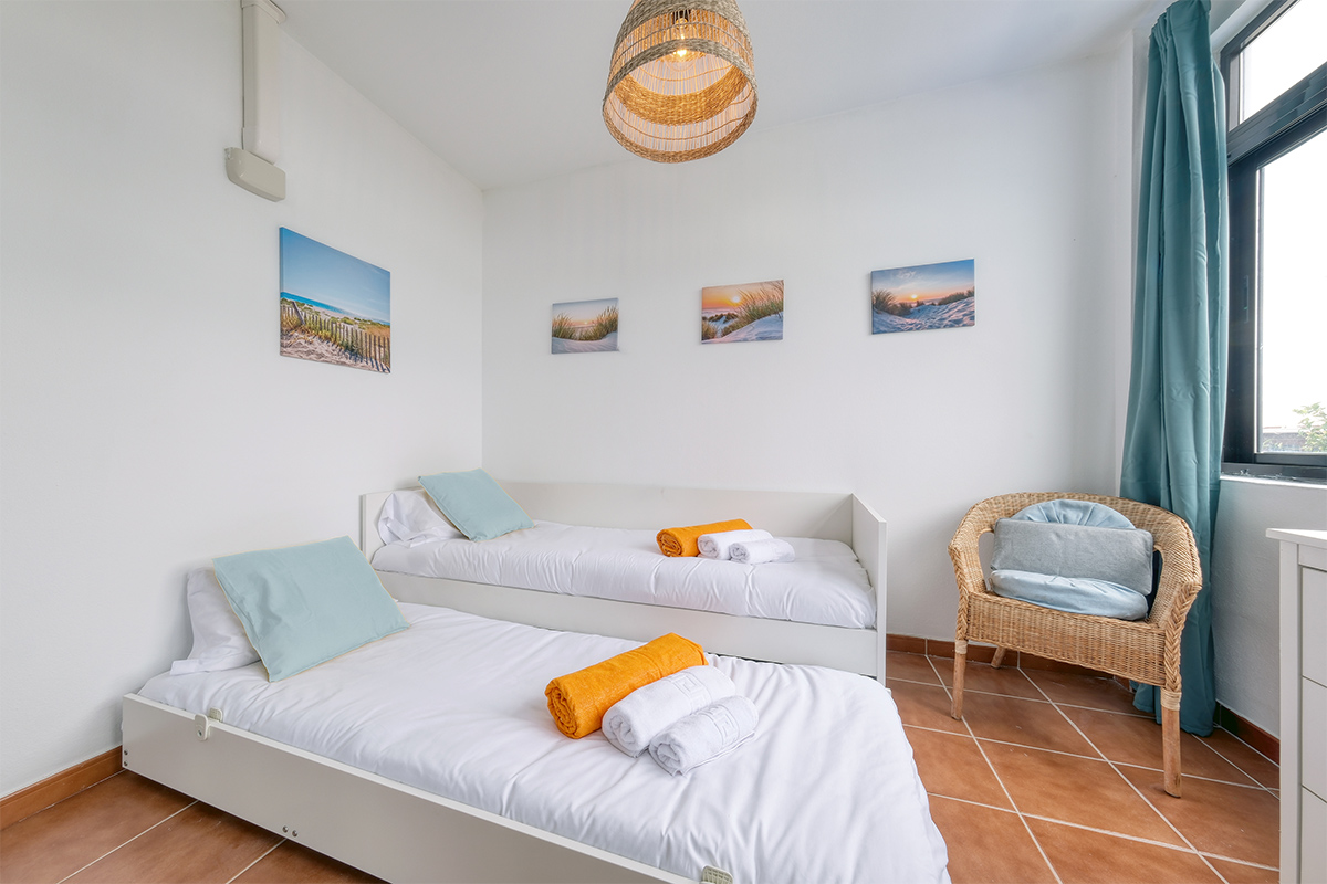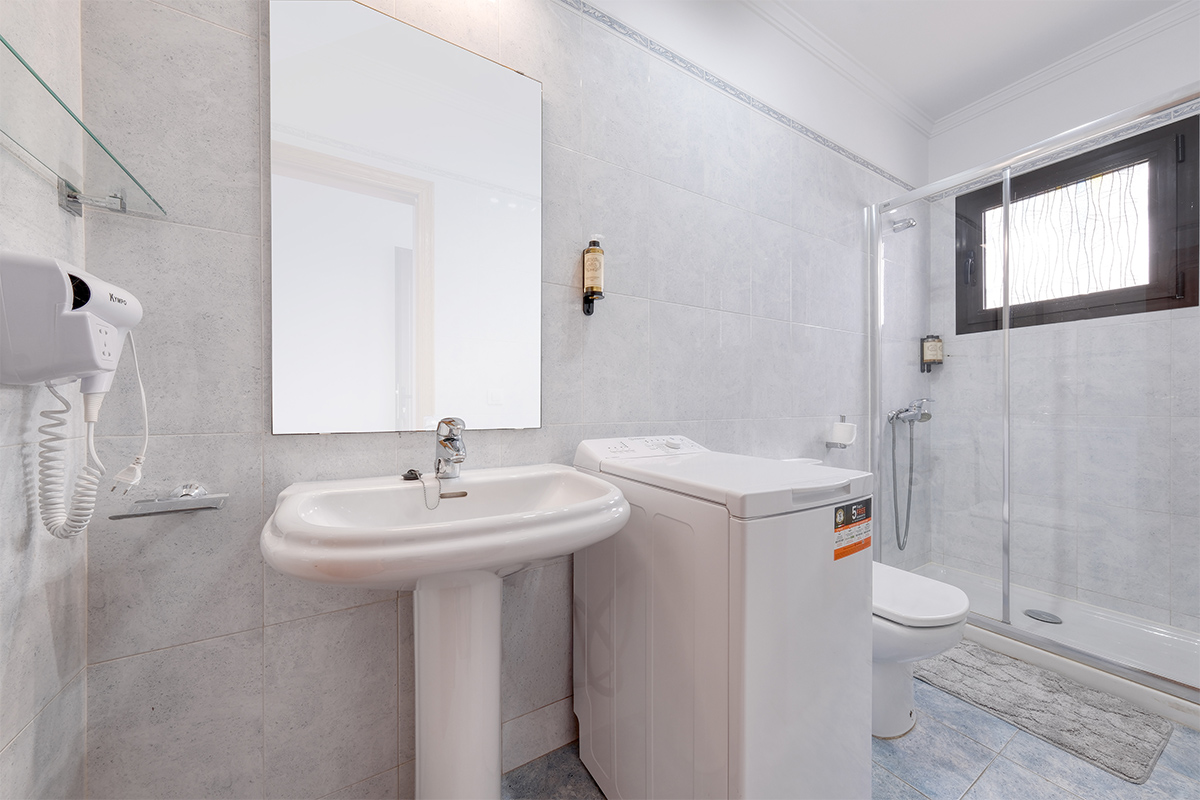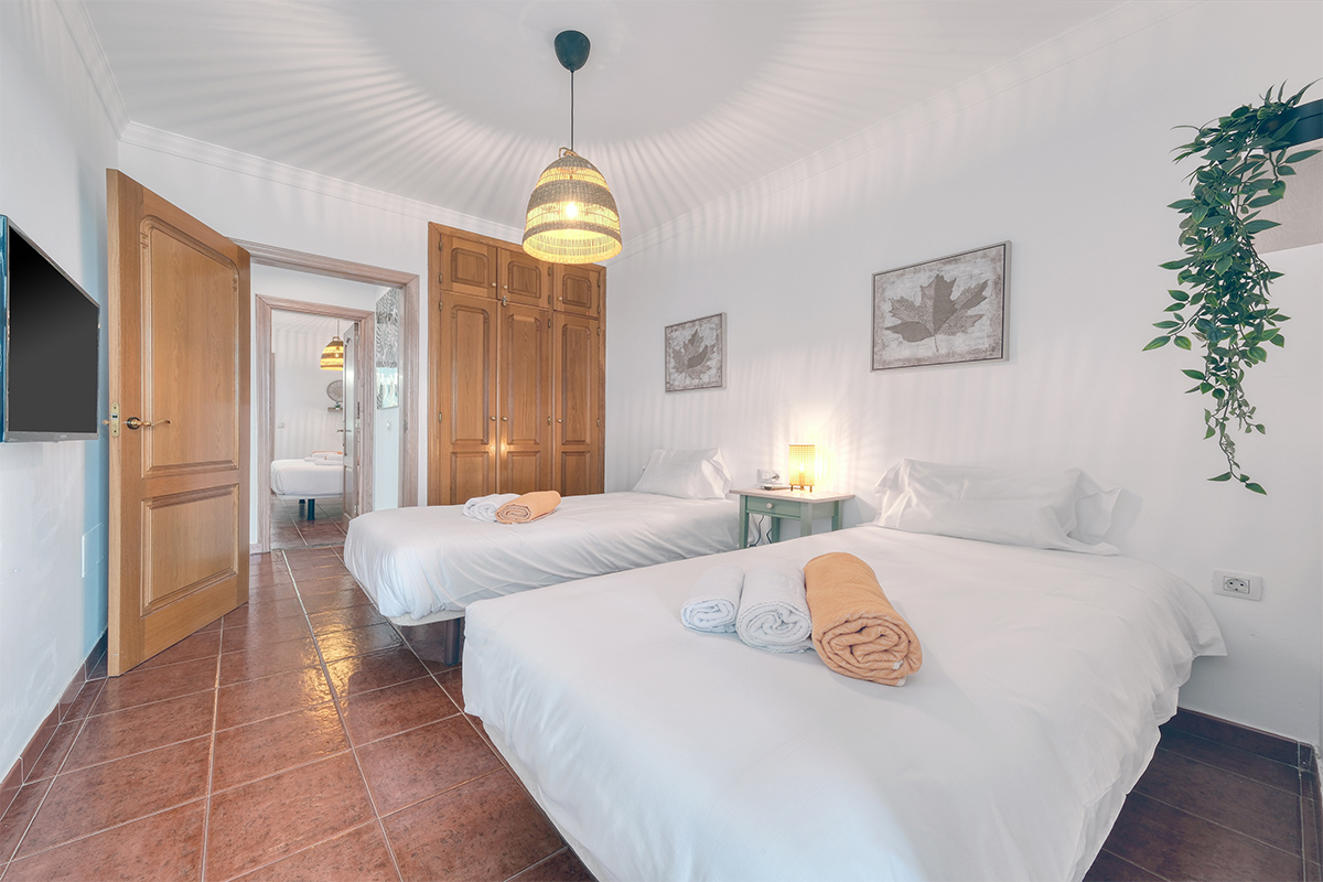 Villa María cuenta con tres dormitorios con capacidad total para 8 personas. Dos de las habitaciones disponen de cama de matrimonio y baño en suite con ducha, ofreciendo mayor privacidad y confort. El tercer dormitorio está equipado con dos camas individuales y una cama nido, ideal para familias o grupos. En total, la vivienda ofrece una distribución cómoda y funcional pensada para garantizar una estancia agradable.