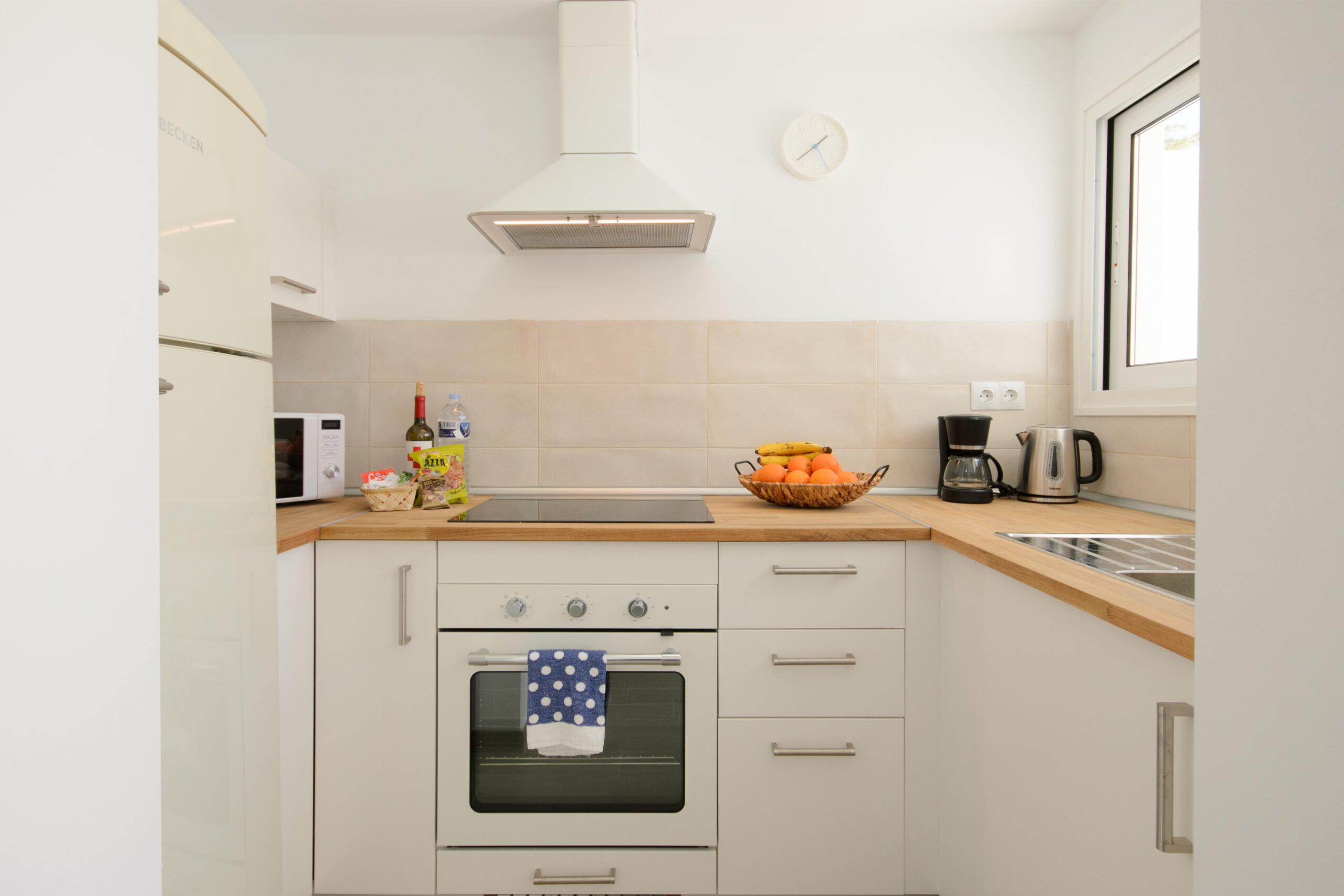 La cocina está totalmente equipada con vitrocerámica, horno, microondas, cafetera, tetera y exprimidor eléctrico, nevera y un completo menaje. White Volcano ofrece además un baño con ducha y 2 preciosos dormitorios: el dormitorio principal cuenta con cama de matrimonio grande y el segundo dormitorio con camas individuales.